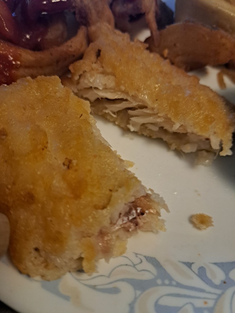 At that point I was so impressed that I told myself I didn’t even care whether it was good, but luckily it was. The lobster bisque was smooth and delicious. The Pierogi Lady potato and cheese pierogi never disappoint. Unfortunately, I was not as impressed with the fish because my filet was tough, but it looks like real fish instead of processed fish, so yay? It wasn’t tough because of the cooking process. I think that particular filet was tough. I hope the other piece isn’t as tough and reheats well. They have grilled lemon pepper filet, grilled crab cakes or breaded shrimp that I’d probably opt if I go again. Although maybe not the lemon pepper if these are the filets they use. I had to pull out the tough part again on filet #2 (see bottom of the one on the left).