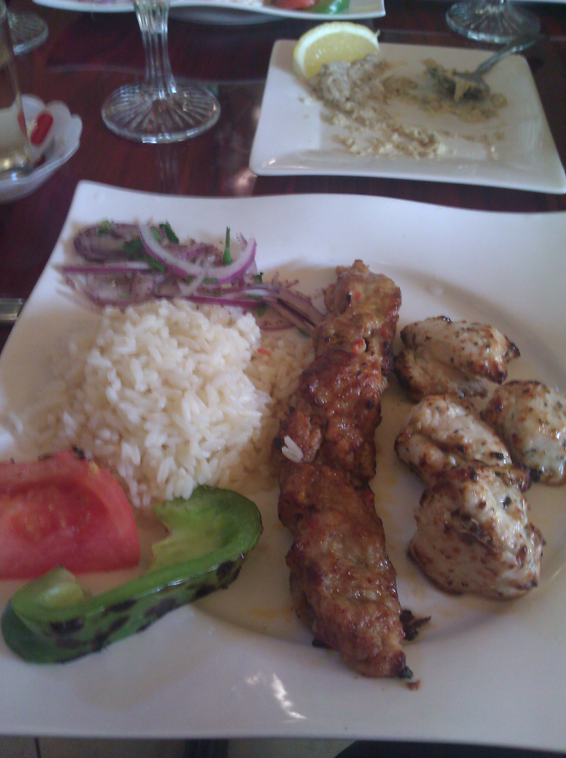 When it comes to Turkish food, my entree of choice is usually the Chicken Adana, although Doner Kebab is a close second. I ordered the Adana kebab (ground chicken and beef grilled on skewers), which was flavorful, and the meat was perfectly cooked – crispy on the outside, yet juicy from the inside, seasoned to perfection. The rice was flaky and a nice complement to the meat. Since I have a dairy allergy I did not order the yogurt kebabs, although several people did and raved about them.