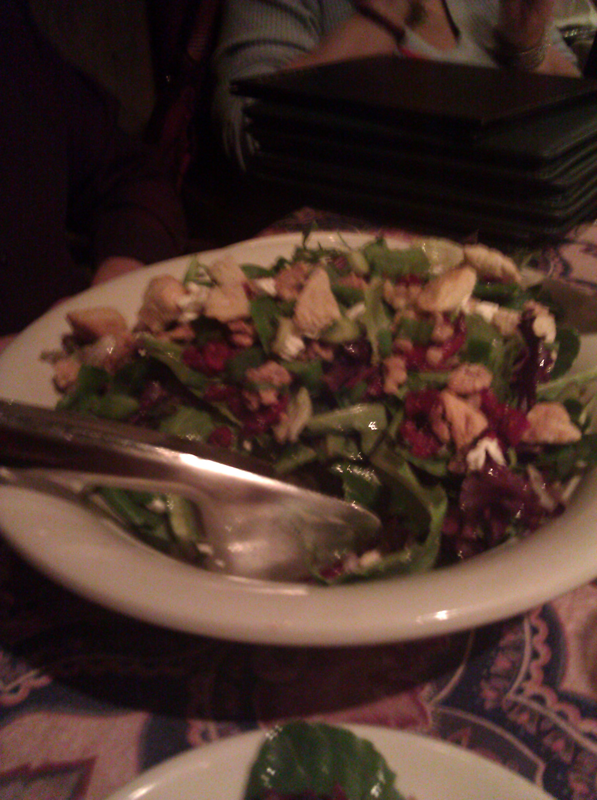 We also ordered two family style salads to share. The Frank & Pauly’s salad with mixed greens, crispy prosciutto, crumbled gorgonzola and red onions did not disappoint. It was very flavorful and just as good as I remembered it. The second salad, the cranberry walnut salad, was my favorite of the two though. It featured mixed greens, dried cranberries, candied walnuts, croutons, green onions, and creamy goat cheese and was topped with a delicious raspberry vinaigrette.
