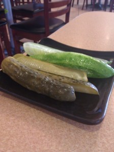 Just as any respectable Jewish deli, they greet you with a glass of water and a plate of homemade kosher pickles. This last visit featured both kosher dill and kosher garlic and dill pickles. They help take the edge off while you peruse the menu and then wait for your food. Jack’s also serves jars of them to go in the lobby. I highly recommend picking up a jar on your way out.