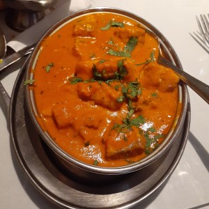 If you like fish I highly recommend ordering the Bombay Fish Curry, which features catfish simmered in garlic, ginger, lemon and spices in a tomato-based sauce. I ordered it through Deliver Me Food and loved it. Unfortunately, they seem to have taken it off the menu. The last time I went I ordered the Butter Salmon Curry, which is similar to Butter Chicken but features salmon in a fresh, creamy tomato & butter sauce. It was quite tasty. My friend ordered the Tandoori Salmon, which was phenomenal. It came on a bed of onions and peppers, which she left but several of us enjoyed.