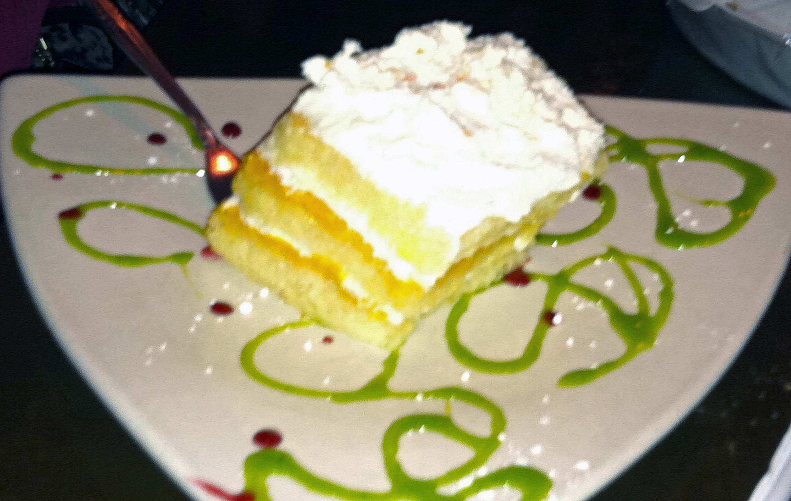 My friends and I tend to order desserts and share them. We shared the tiramisu and the dreamsicle cake (which is probably similar to the Limoncello Cake being offered now). The tiramisu was delicious, but the clear winner of the evening was the dreamsicle cake. Three layers of moist pound cake with a big splash of orange filling and whipped cream – it was delicious and light with just the right amount of richness.