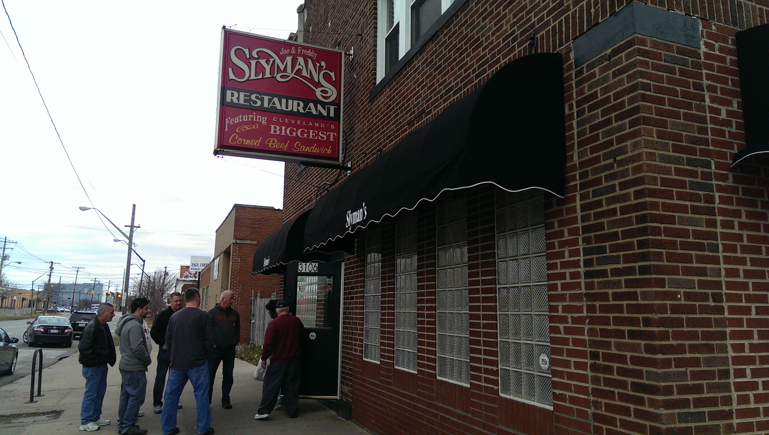 This place is a family-run institution. They celebrated 50 years in 2013. Joe and Mae Slyman opened the restaurant in 1963, and now their sons are working behind the counter, slicing the meat and grilling the sandwiches. Slyman’s is located on St. Clair Avenue at E. 31st Street. You can park along St. Clair and E. 31st, but there is also a parking lot across the street off E. 31st.