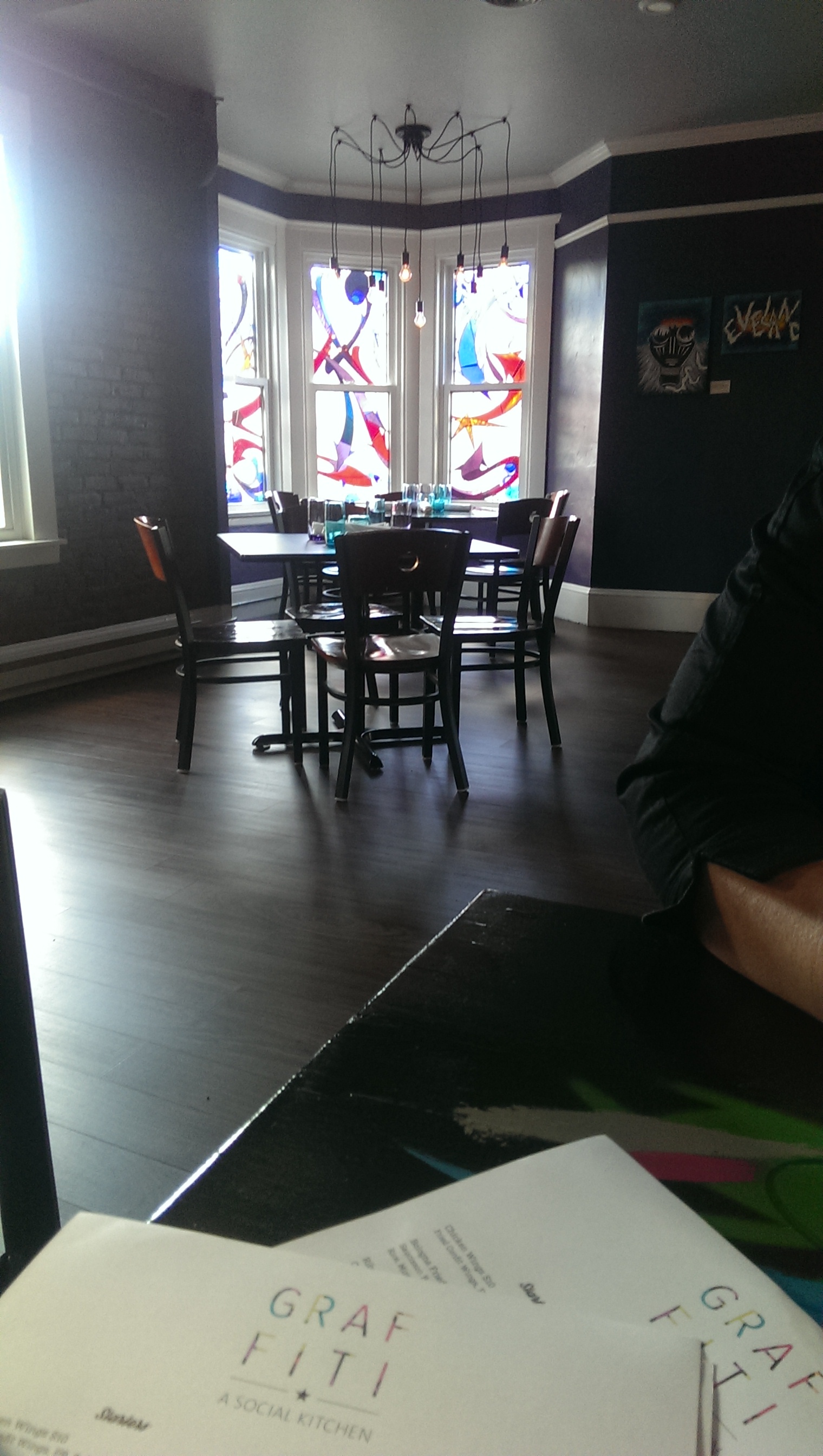 Graffiti: A Social Kitchen is the latest creation from chefs and brothers-in-law Brian Okin and Adam Bostwick. I recognized a few of the items on the menu from the pop-up they did at Toast last year, which I consider to be the best meal I ate last year. I’ve heard nothing but good things about Graffiti from everyone who has been there, so I organized a dinner there recently. The restaurant is located in the building where