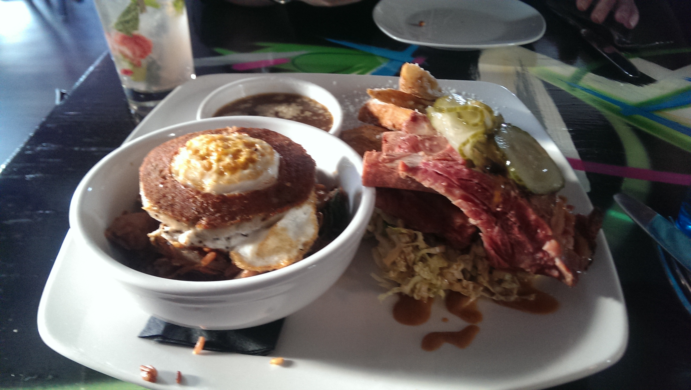 For my entree I decided on the Monte Cristo. I read several Yelp reviews recommending it, and I’m glad I took their advice. This dish is a deconstructed Monte Cristo, featuring maple brined pork tenderloin, French toast,