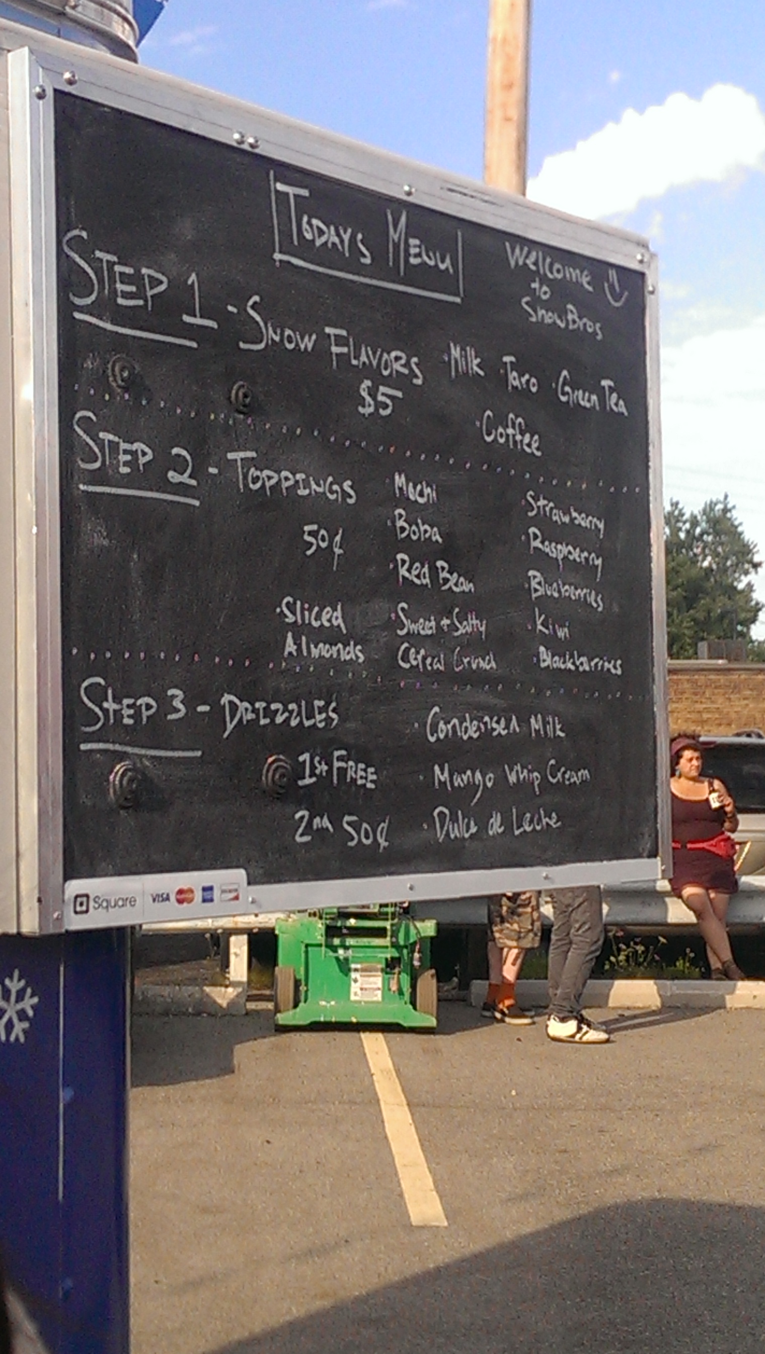 is much more plentiful, but maybe the food truck was limiting their volume. I first learned about shaved ice from her, so I defer to her judgment.