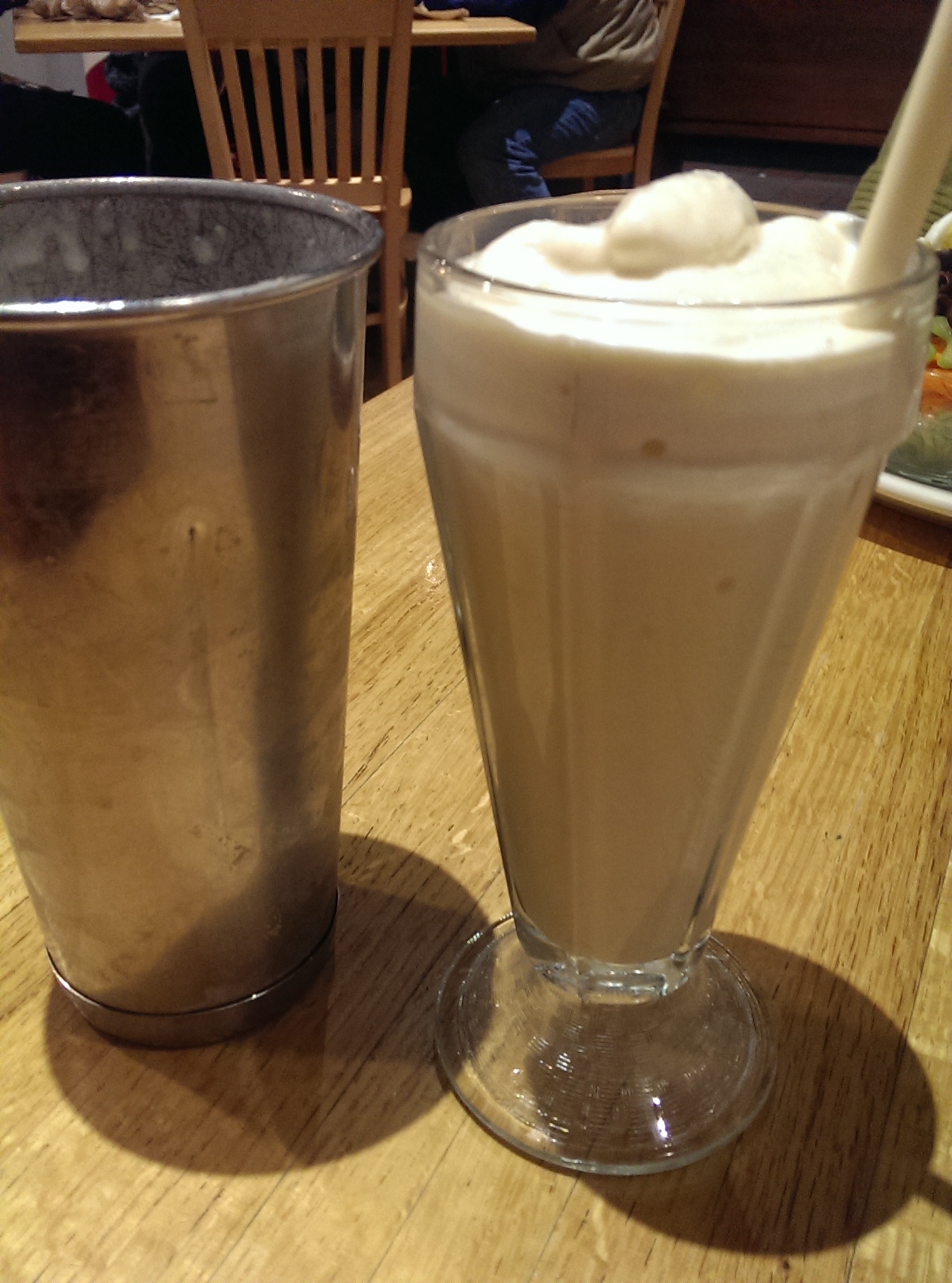banana – made with fresh bananas and vanilla ice cream. One of my friends swears by their chocolate peanut butter milkshake. It’s best to order them in the restaurant, because you get lots of milkshake with the glass and the metal mixer full. If you order one to go you just get a small plastic cup sealed with plastic.
