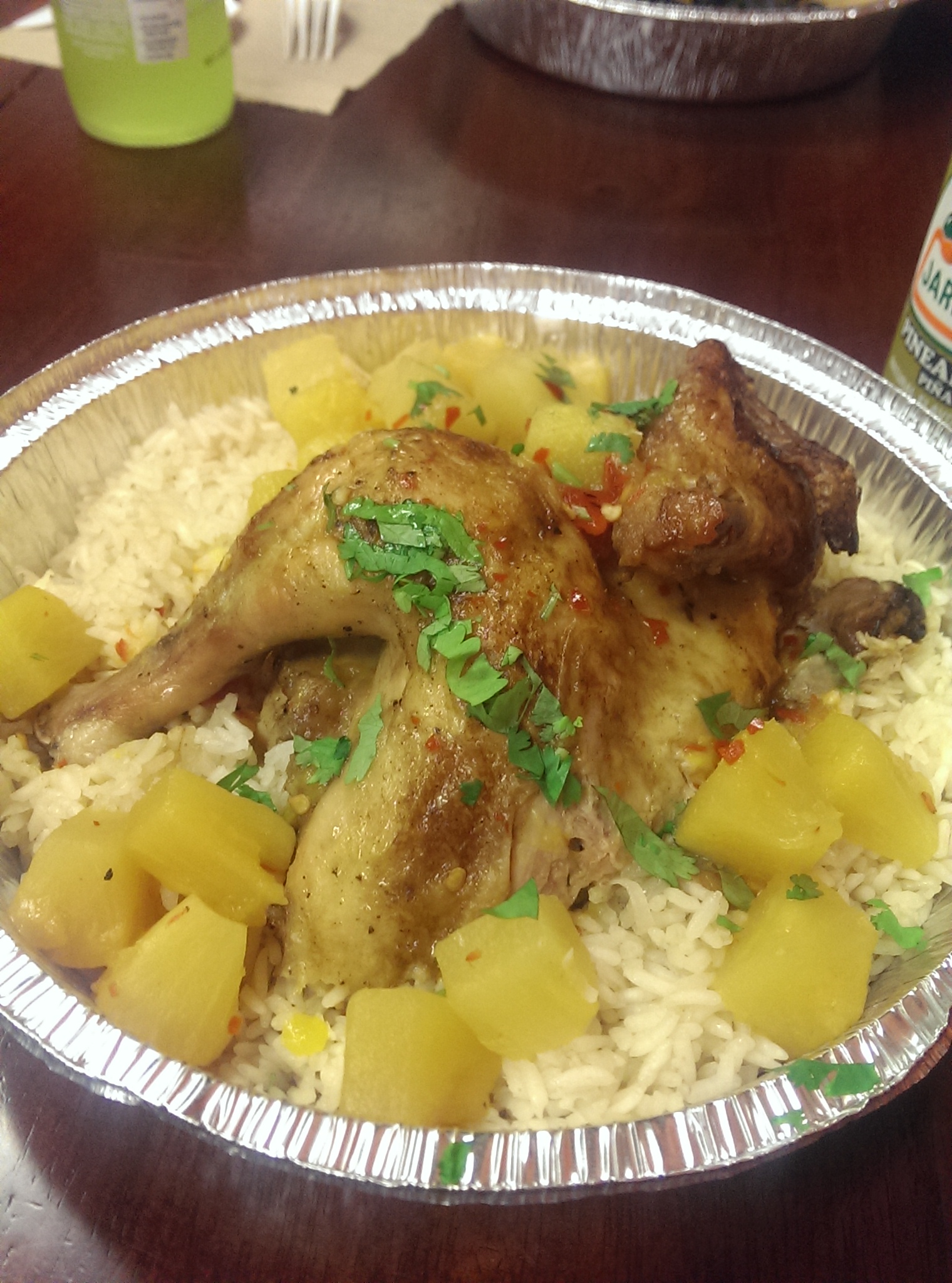 pineapple and mango chutney. The chicken was perfectly cooked, the coconut rice was delicious and the chutney had a little kick to it but not too much that I couldn’t enjoy it. It was also a lot of food, and I ate