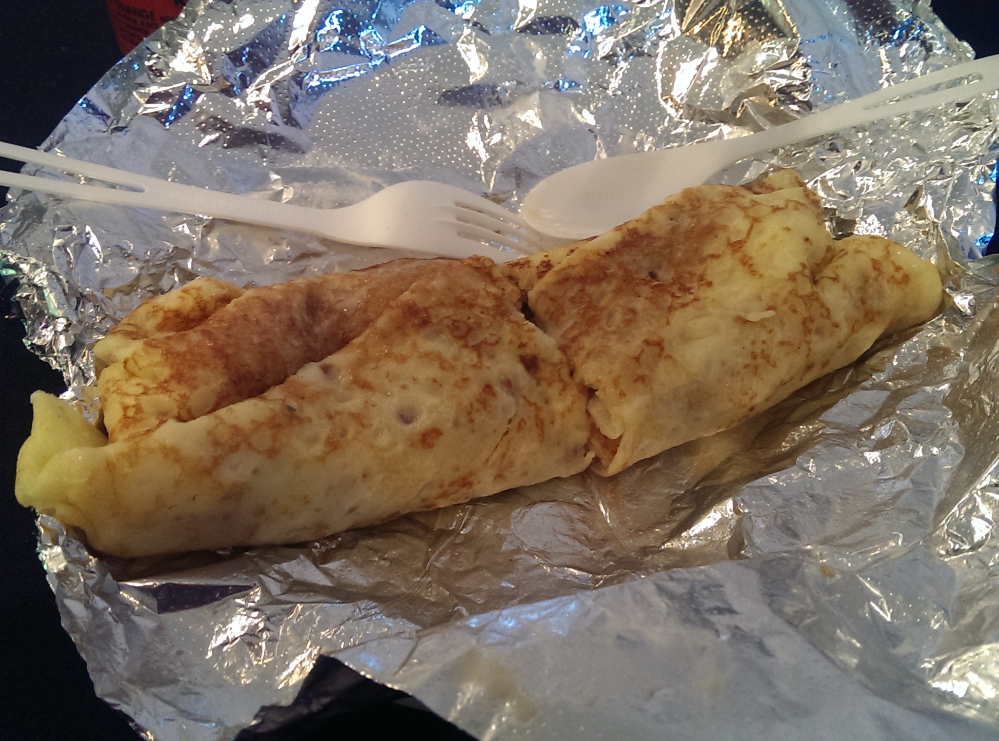 I ordered the Clevelander crêpe at the grand opening (which is why it is shown in foil and with plastic utensils), and it was delicious. It was a nod to a pierogi, with cheddar cheese, caramelized onions, and mashed potatoes wrapped up in a light crêpe with