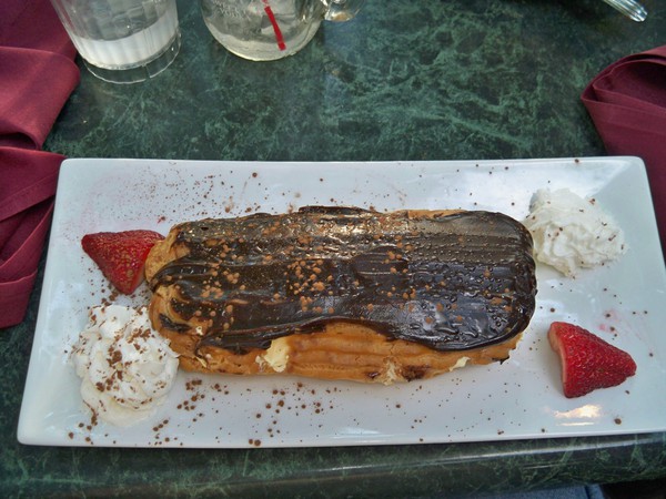 The table next to us ordered desserts, which were huge. We were too full, so we abstained. But that eclair looks very tempting. I can highly