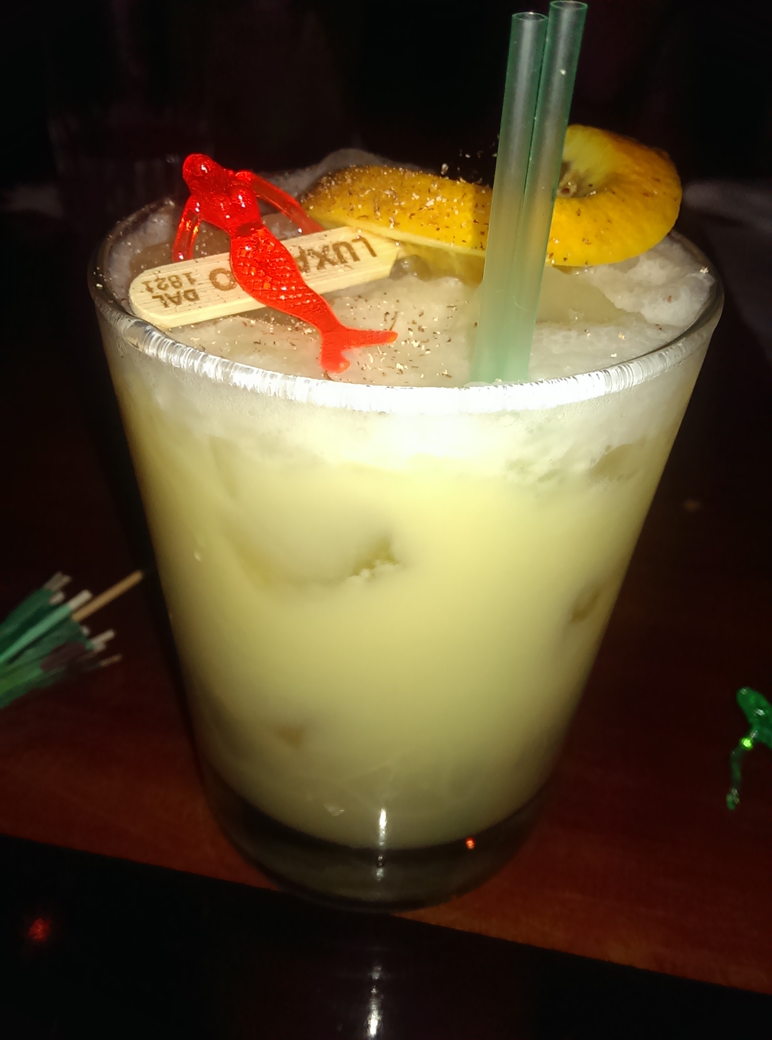 This time I ordered Heart of Darkness, which features passion fruit, honey and citrus with some alcohol. I love me some passion fruit. My second drink was a Limon Dee, which they bill as tasting like a key lime pie. It did not disappoint and came in a fake coconut, which I was particularly thrilled about.