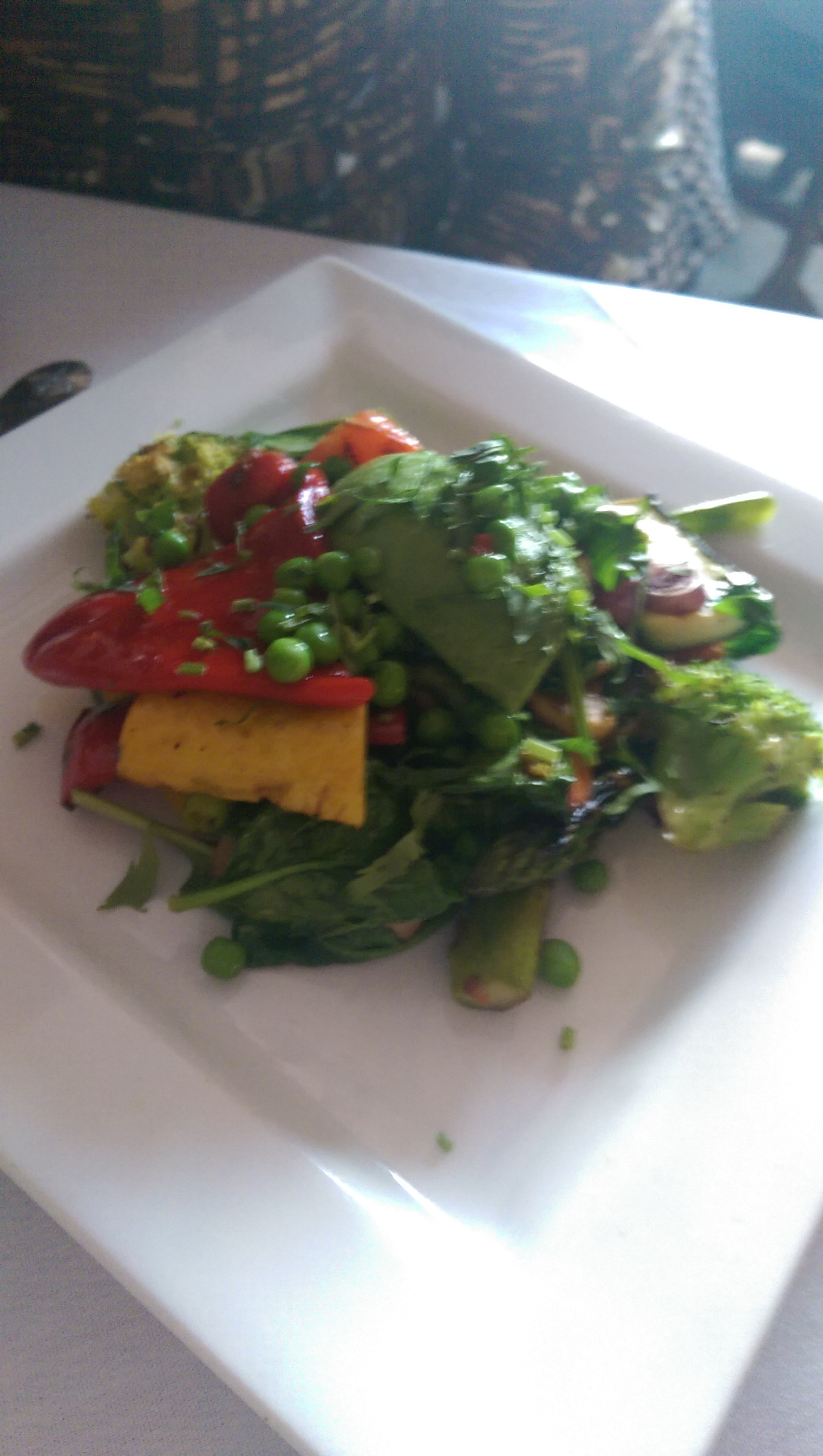 We ordered so many other small plates. One of my vegetarian friends was thrilled with her Patatas Bravas (spicy potatoes), mushroom risotto, and the Vegetales a la Parilla (medley of grilled vegetables – pictured here).