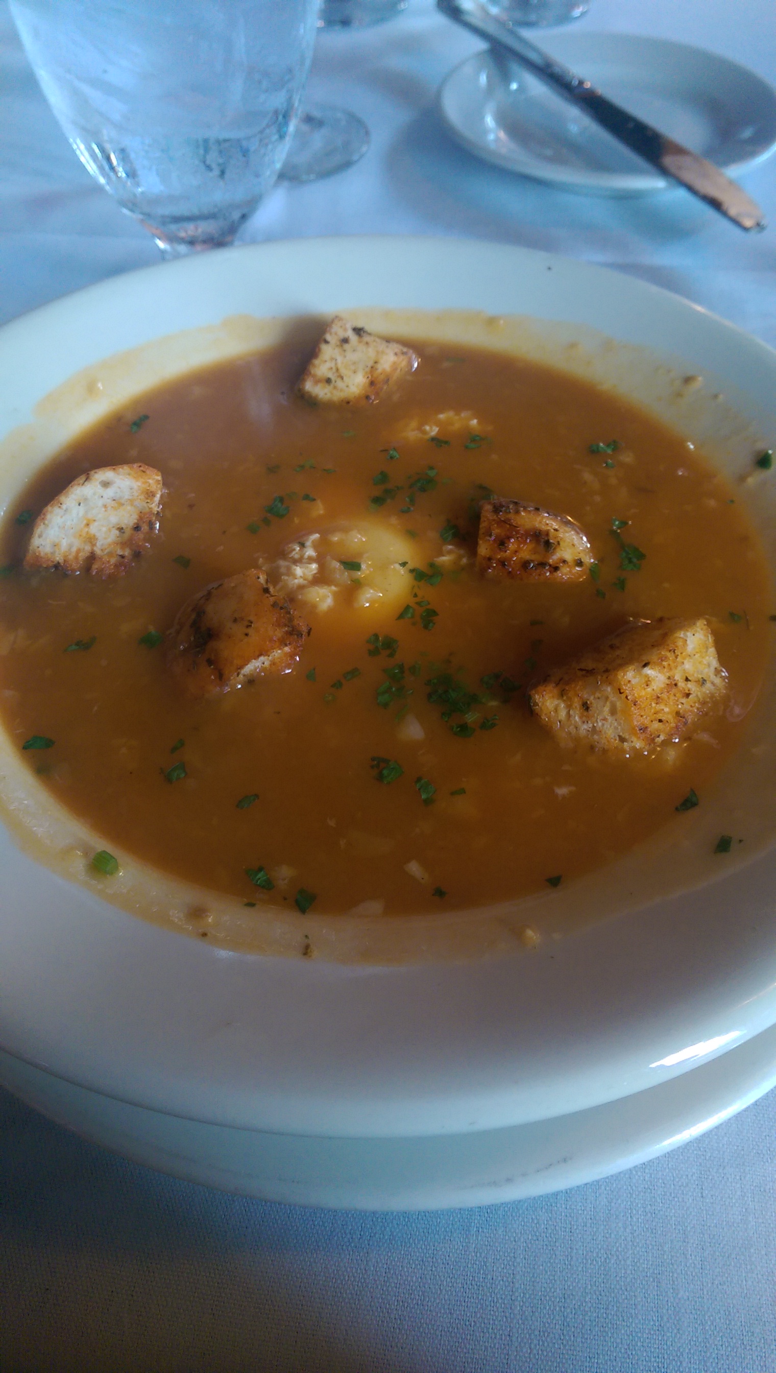 I also ordered the garlic soup and didn’t love it, but that might have been just me. There was a boiled egg in it acting as a kind of dumpling, and I am not a fan of egg since I’m allergic. I ate around it.