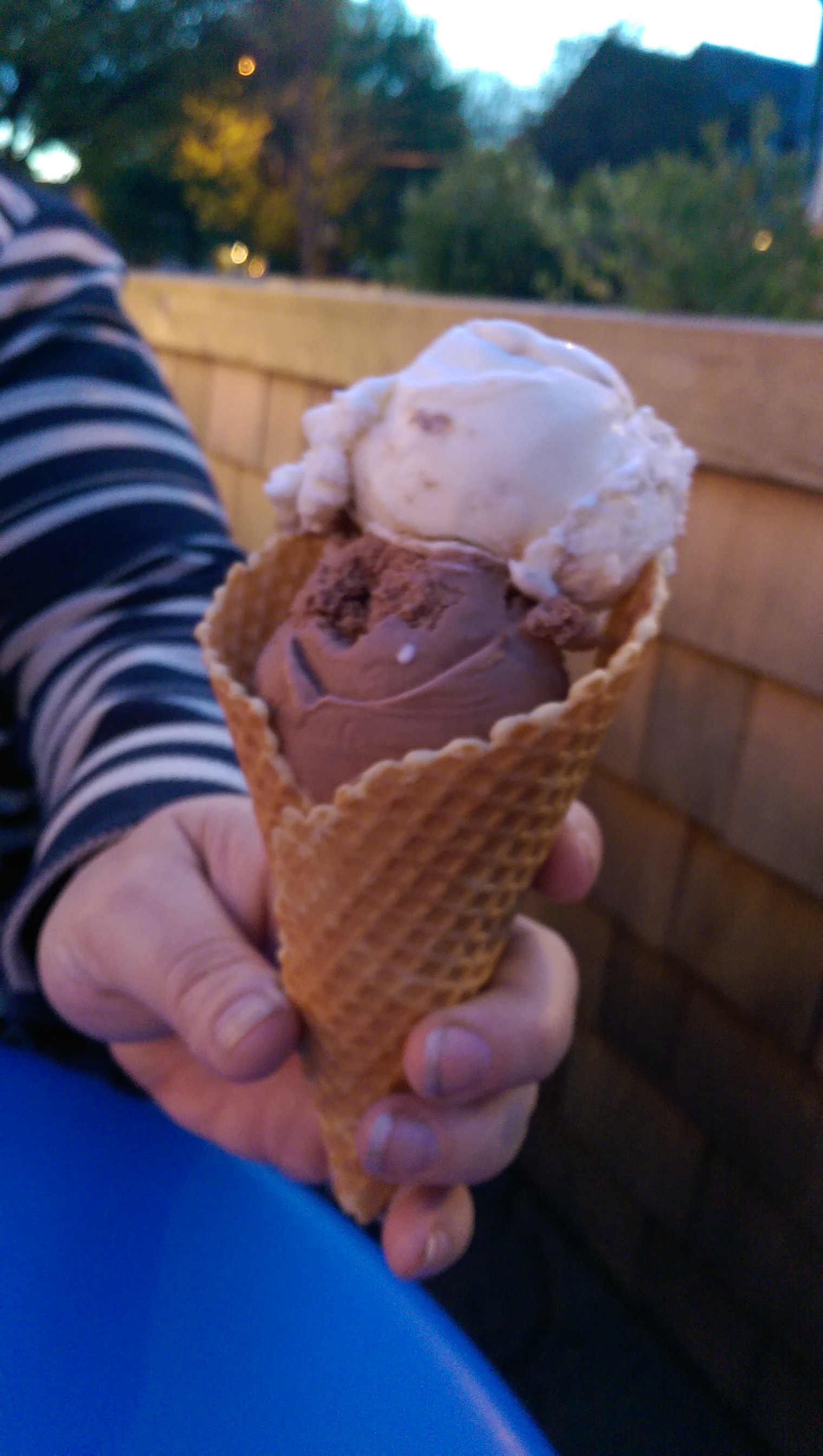 sorbets are also intriguing (and vegan if you like that sort of thing). They allow you to sample the flavors before you order. They also serve vegan soft serve on Sundays. In addition to scoops in a cup (2 for $4 or 3 for $5.50), you can order your ice cream or sorbet in a waffle cone, with a churro (with or without dipping chocolate), as an iced cream sandwich between warm, fresh cookies or Coquette Patisserie macarons, or nestled in a fluffy egg waffle. They make everything there fresh.
