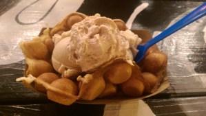 I had been wanting to try the egg waffle and I am so glad I finally did, because it is absolutely delicious. It is a great accompaniment to the creamier flavors, and you can imagine my surprise when I was then asked if I wanted regular whipped cream, peanut butter whipped cream or Nutella whipped cream. What? My friends also ordered egg