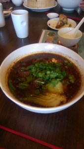 I got together a group of enthusiasts for a visit so we could try their menu – and try the menu we did! We started off with an order of cucumber with garlic and then enjoyed three orders of soup dumplings as well as the veggie and shrimp and pork wonton soups, the Chongqing spicy beef noodle soup, Shanghai Pan Fried Flat Noodles, braised duck in soy sauce, an order of pig ear with
