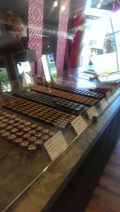 The chocolates here are expensive, but they are handcrafted and so worth it. You will savor every bite. You will pay $2.25 each for a piece of chocolate and can buy a box of 6 for $13 and 12 for $25. Each one packs a tasty wallop, whether it’s rich Valrhona chocolate or fine Swiss white chocolate featuring cinnamon, lime, hazelnut, bourbon or passion fruit. I am not normally a fan of white chocolates, but the Frou-Frou and Maui Wowie truffles are among my absolute favorites. You can buy their chocolate in truffle, bar, bark and seasonal forms. The truffles are gorgeous – each with a distinctive hand-painted decoration. Some of the truffles are mainstays, but some change at whim or with the season. When it comes