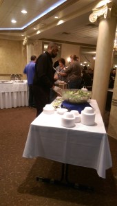 and talked about the crime of big business stealing pensions from hard-working employees. One big plus was that the dessert table was still plentifully stocked when I went to grab some dessert (even though I was full and left a lot on my plate). There were trays of cookies, some jello and slices of cake. I grabbed a small piece of cake, which I found cloyingly sweet, but it grew on me and I enjoyed it. It was nice and moist.