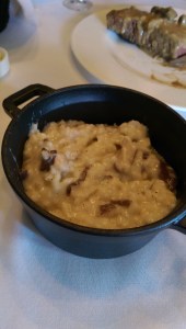 auce is a Diane sauce featuring demi-glace, mushrooms, shallots, brandy and cream), which I knew I loved but decided to order something I don’t make myself. For those of you who are wondering what demi-glace is, it is a combination of espagnole sauce and a rich brown stock. The strip steak was extremely flavorful and tender, just as it should be. I loved the Bordelaise sauce as well. The braised artichokes were tender, and the white wine butter sauce delicious. The risotto features mushrooms, which is what made me decide to order it over the frites. The rice was al dente, and the flavor was phenomenal. I took half of everything home and enjoyed the meal again the next day for lunch. After all, I needed to save room for dessert.