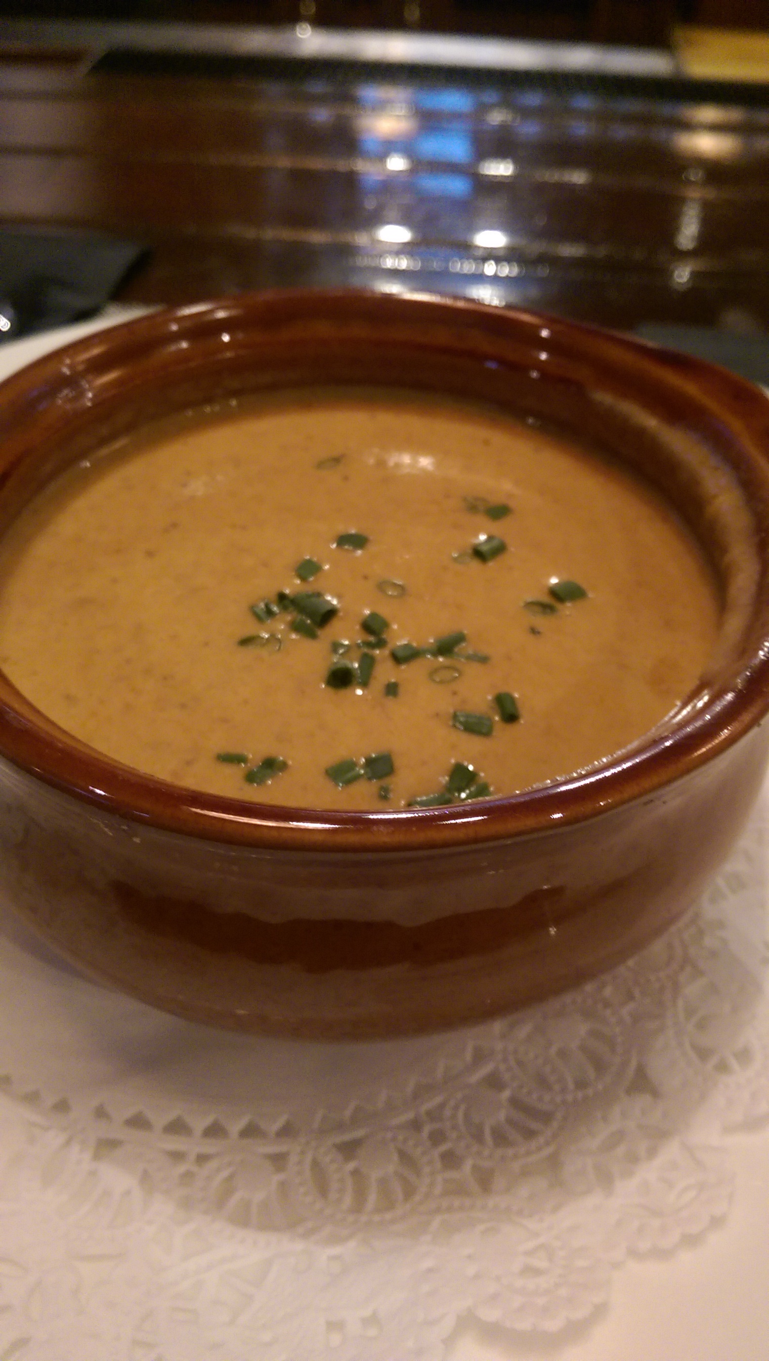and enjoy a quick bite with my friend who I had shared the desserts with. We sat at the bar this time and both ordered two appetizers. I chose the lobster bisque (I love French onion soup, but did not want to drip it) and the escargot. The lobster bisque was delightful – creamy and a nice underlying sherry base. But the star of the meal was the escargot. The Burgundy snails came out bubbling in the butter and garlic, and I enjoyed sopping up the sauce with Sérénite’s great homemade bread. I paid my bill and rushed out to go to the concert and was able to greet another friend who was taking her parents out for a nice meal as they walked in.