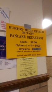 This year I decided to try the Burton-Middlefield Rotary Pancake Breakfast because they serve omelets in addition to all you can eat pancakes and sausage. Two of