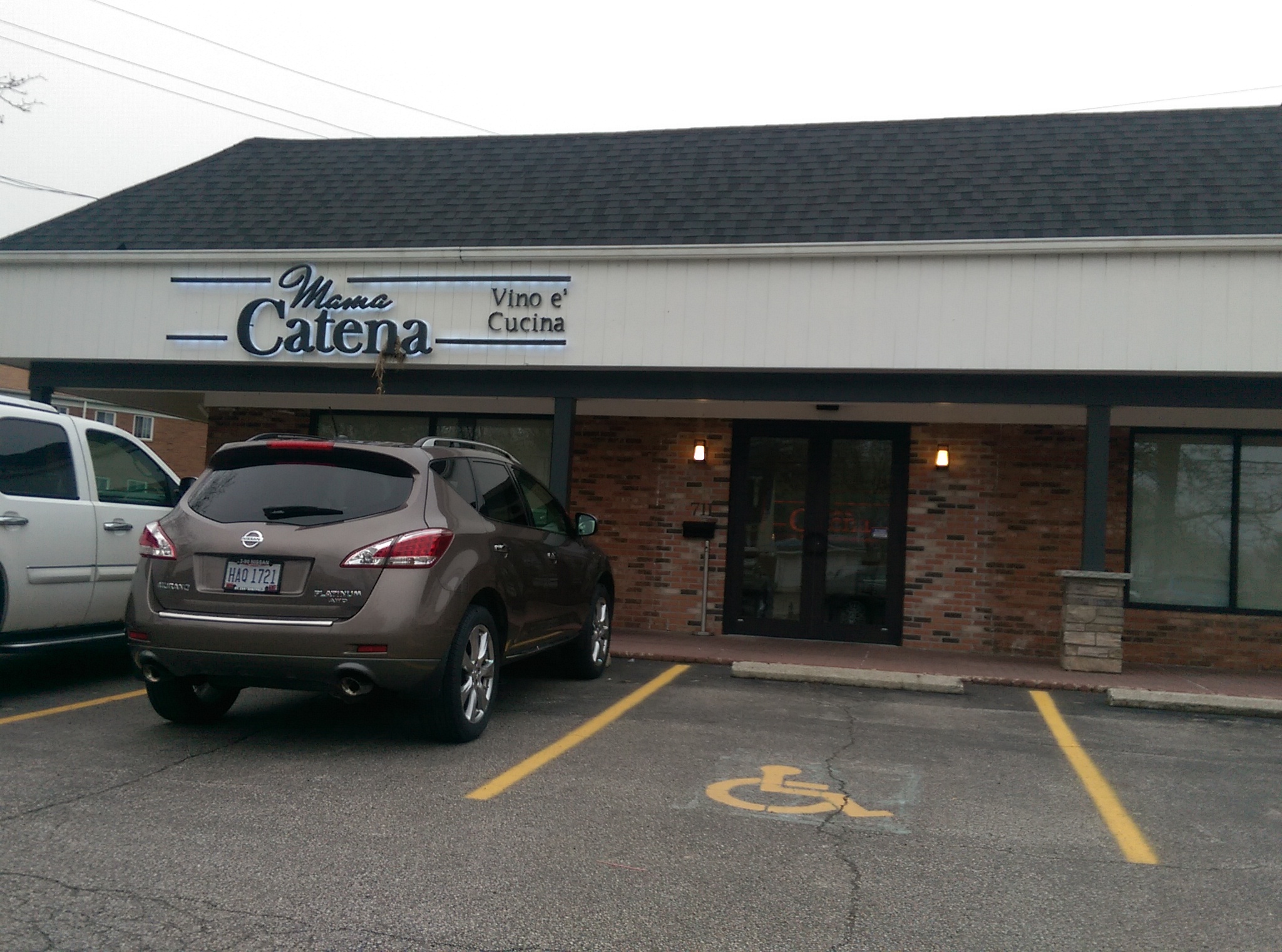 I live at the top of the hill into Little Italy, but I gladly drive to Euclid to eat at Mama Catena Vino e’ Cucina. I discovered it recently while at the Euclid Library for an event. I left hungry and searched for some place nearby. I am so glad I chose it. As soon as I walked in I remembered having seen a video of them receiving an award for Best Sinful Dessert in Cleveland, so I immediately knew I was going to be in good hands. Established in 1989, it was closed for a while after a mechanical fire and has recently reopened.