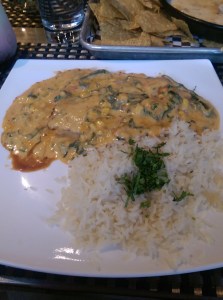 I ordered the Pollo a la Crema y Espinaca, which is grilled chicken breast with sauteed spinach and corn and roasted peppers in a lightly spicy cream sauce. It was delicious. It was served with cilantro white rice. I would definitely order this again. It hit all the right notes. I am a big fan of spinach and chicken, and didn’t find the cream sauce spicy at all. The leftovers also heated up well the next day.