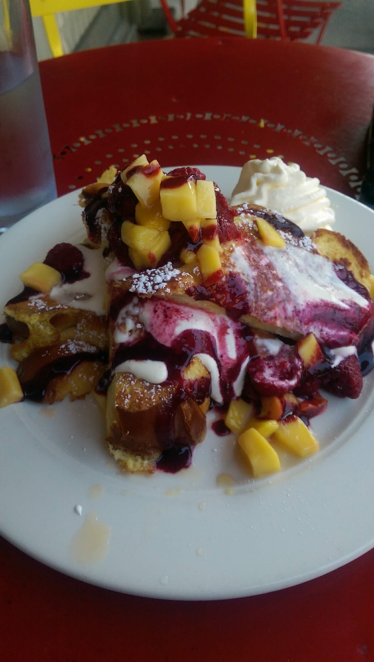 Le Petit Triangle’s Raspberry and Mango French toast made with challah was not only a feast for the eyes – it was also a feast for the tummy. I can’t even begin to describe had delectable this was. I enjoyed every single bite. I went to brunch there with a friend, and she ordered this and gave me a taste. I went back a couple days later to order my own and enjoyed it on the patio with a good book. In fact, this might have been the best thing I’ve eaten all year.