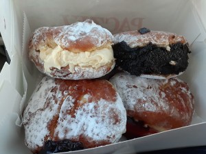 overfill. They also split them halfway through, and the filling bulges out of them. I bought a cream cheese (because it looked amazing), blueberry, strawberry and something called Poppy Butter. I better not have to take a drug test in the next week or so (poppy can be a false positive), but it was an interesting filling. We tried the filling itself in the car. I can’t report on how much I spent