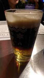 The tabletopper sign said the burger paired well with GLBC Christmas ale, but I ordered a Black & Tan because I could. Anytime Guiness is on draft I order it. Black & Tan is one of my favorite Irish beer or ders – half Guinness and half Harp or other Irish lager. It always hits the spot.