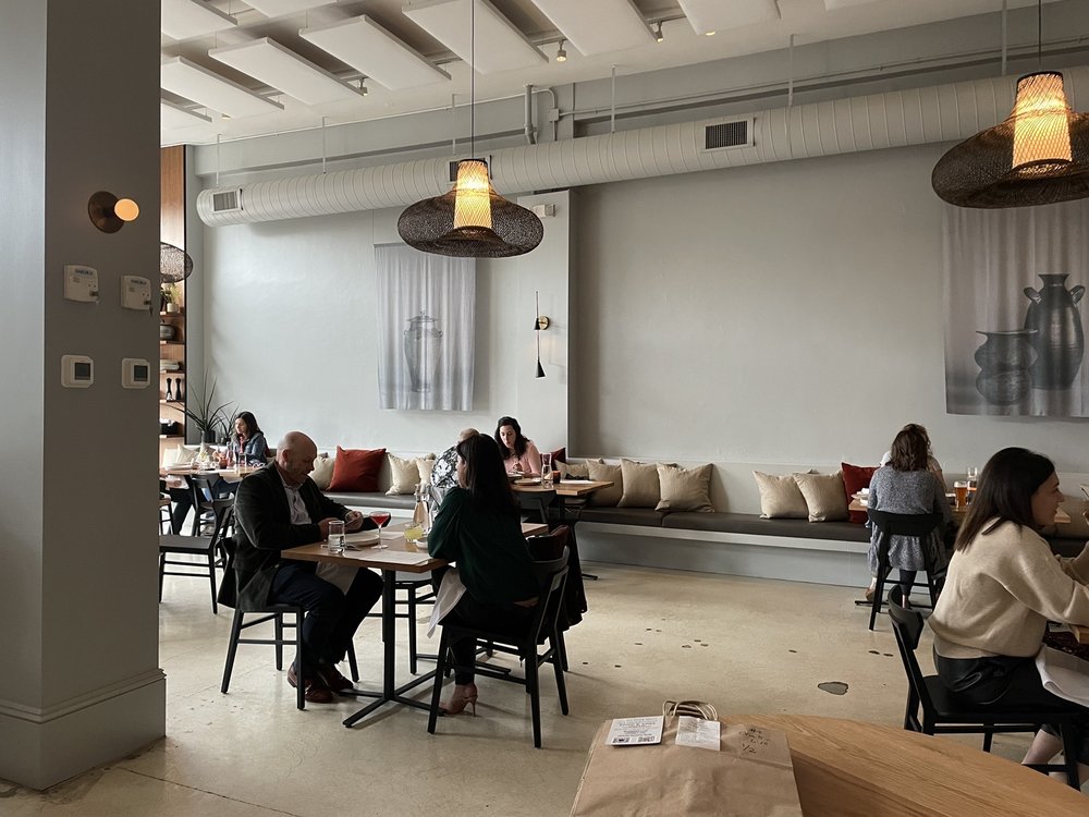 Zhug is a new concept by chef Douglas Katz that offers “Middle Eastern Mezze” in a casual, high energy urban space at Cedar Fairmount. Low tables with pillows surround the space filled with tables. There is no hint of its past as a Liquid Planet. The kitchen is tucked in the back right corner. Esquire magazine named it one of 23 Best New Restaurants in America in 2020. Michael Symon visited town a few months ago for the birth of his new grandson and praised it on Instagram as “insanely good .. one of the best and most thoughtful restaurants in the country right now IMHO.“ The praise, combined with a serious lack of parking and the fact that they don’t take reservations, made the restaurant pretty difficult to visit (even though I live very close).