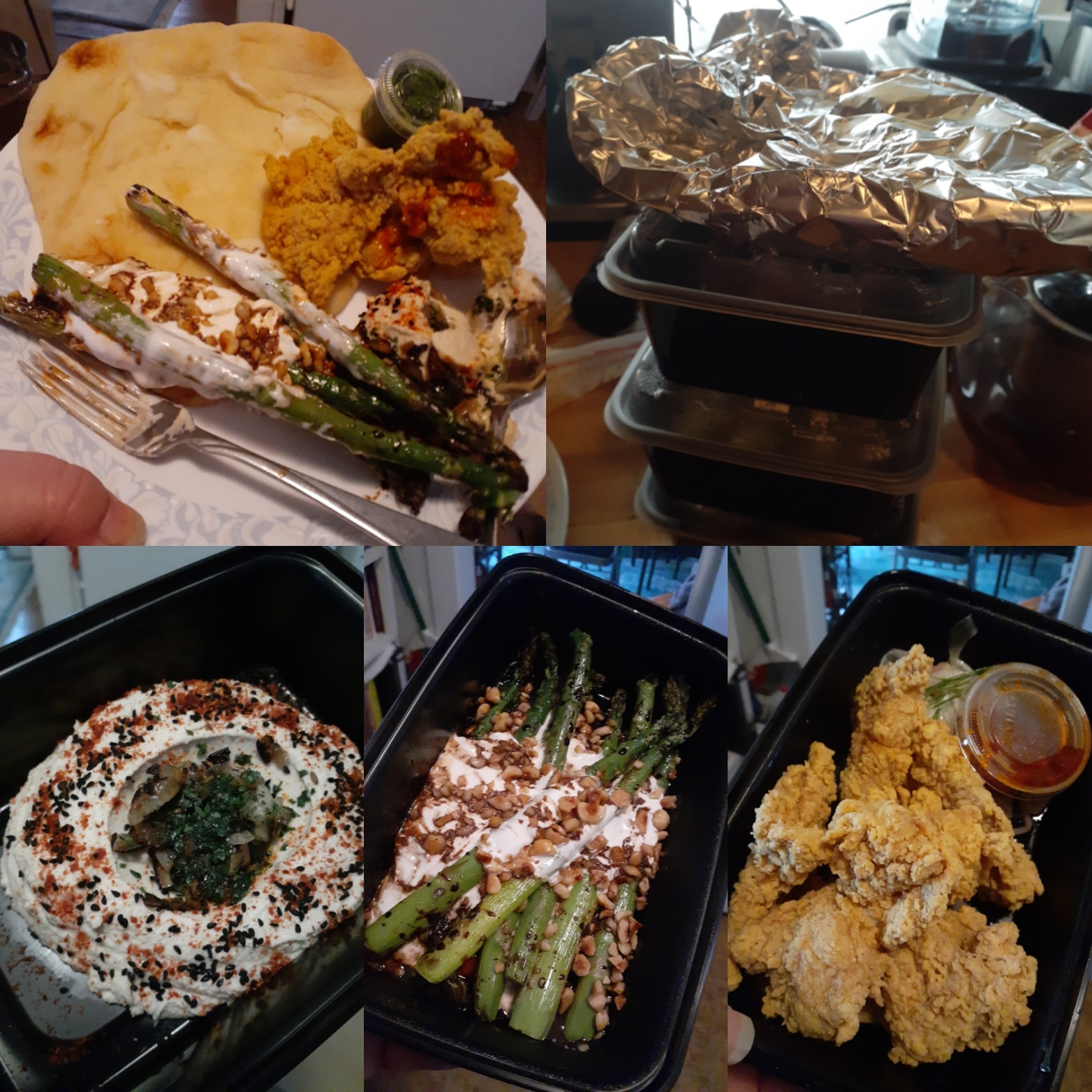 The pandemic changed that for me. Doug wanted to keep the restaurant operating, so he decided to switch to takeout – with curbside pickup and delivery. Doug himself delivered the meals and waved to me on his way back for the next delivery order as I sat in my car waiting for my order. This allowed me to try the delicious choices in the comfort of my own home. I went a little crazy that night – as you can see in the photo below. I ordered the hummus, curry fried chicken, buttered shrimp, crispy brussels sprouts, grilled asparagus, and a cocktail to go (in that cute little jam jar). The cocktail was a lot of fun, and I have reused the jam jar several times to store leftovers. I must have a type of favorite cocktail, because I ordered it when we sat down to eat in the restaurant.