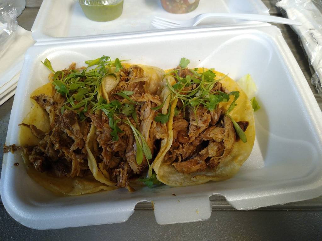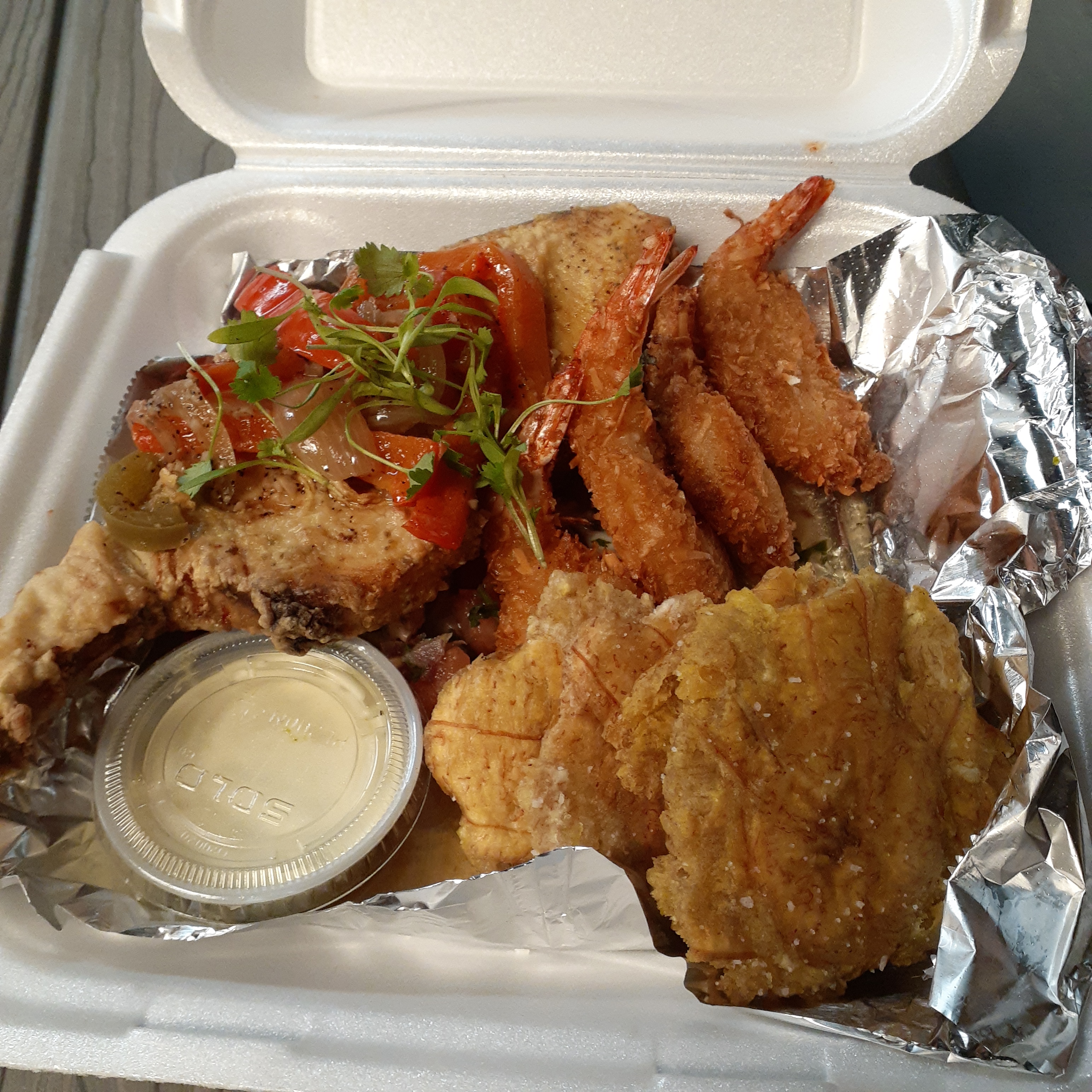 One of my friends ordered the Beef Empanada Trio and enjoyed it (photo missing one of the empanadas and picturing one of the tostones). Her partner enjoyed the escabeche. One of my other friends ordered the pork tacos (pernil) and a pound of seafood salad (which she took home with her). I think she will be going back regularly for it. I can’t wait to go back and try one of the many Mofongo choices.