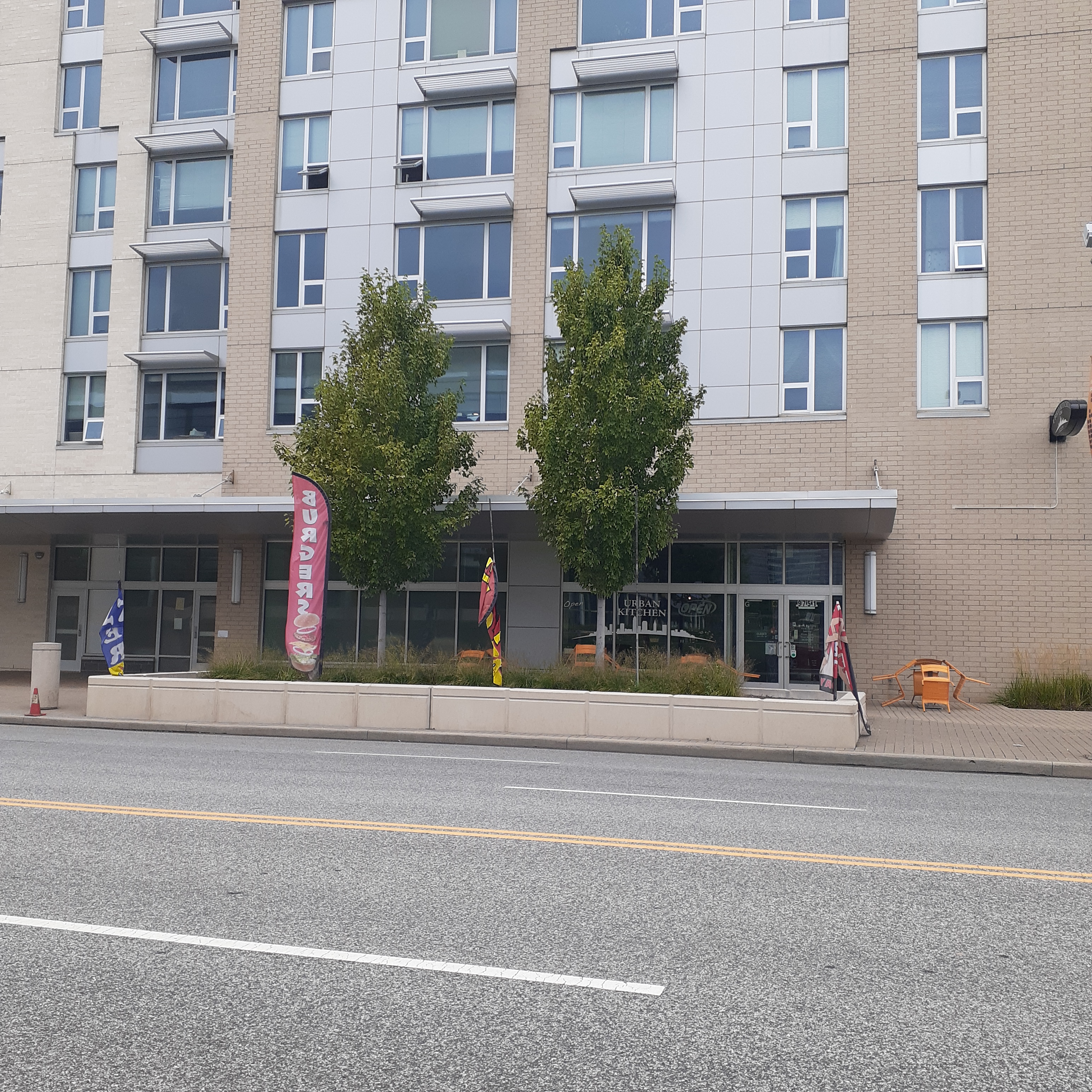 There’s plenty of parking in the back (use the phone app), and there is an entrance in the back as well. Enter off Chester, follow the drive under the building, and park in the lot. The entrance is in the corner near the Kindercare entrace.
