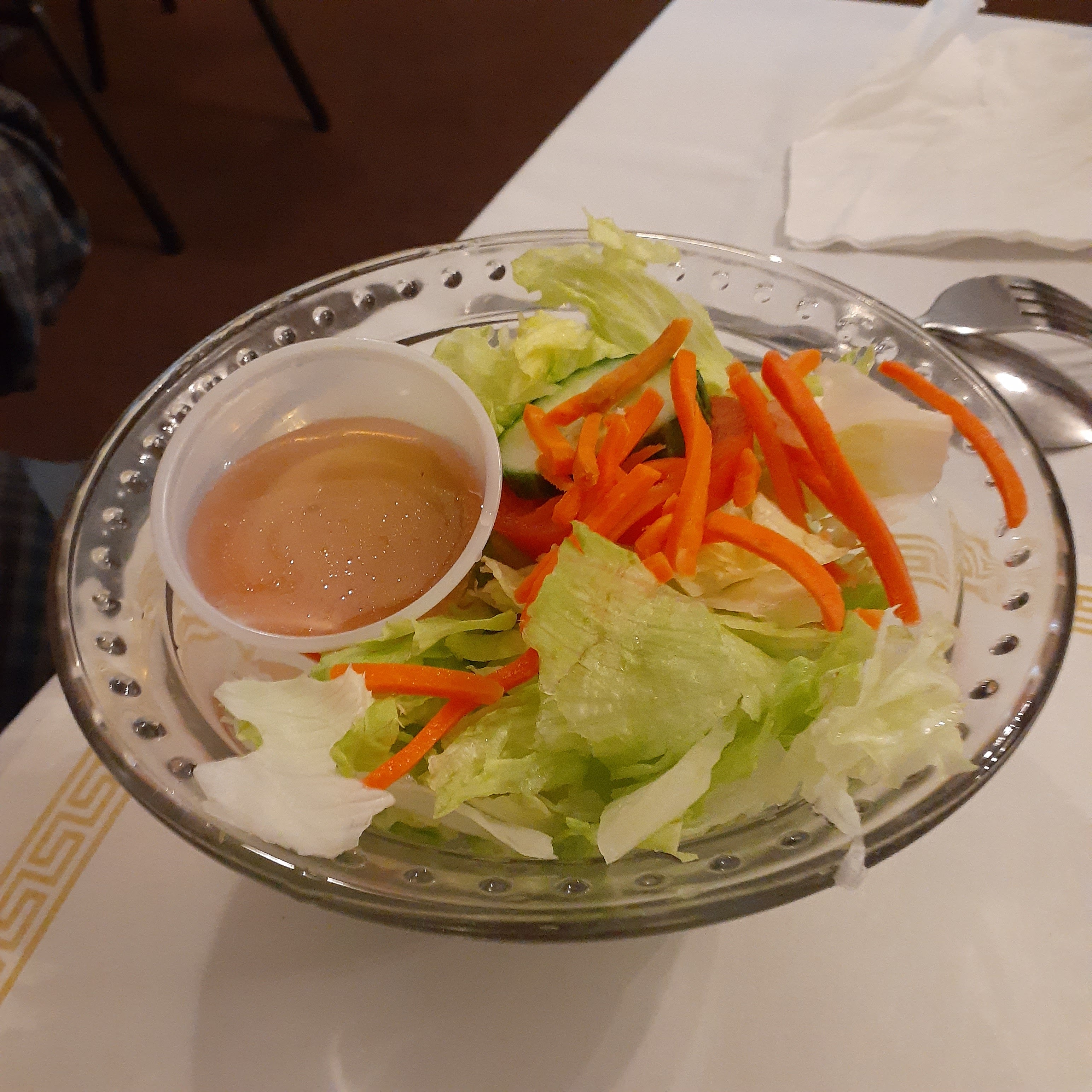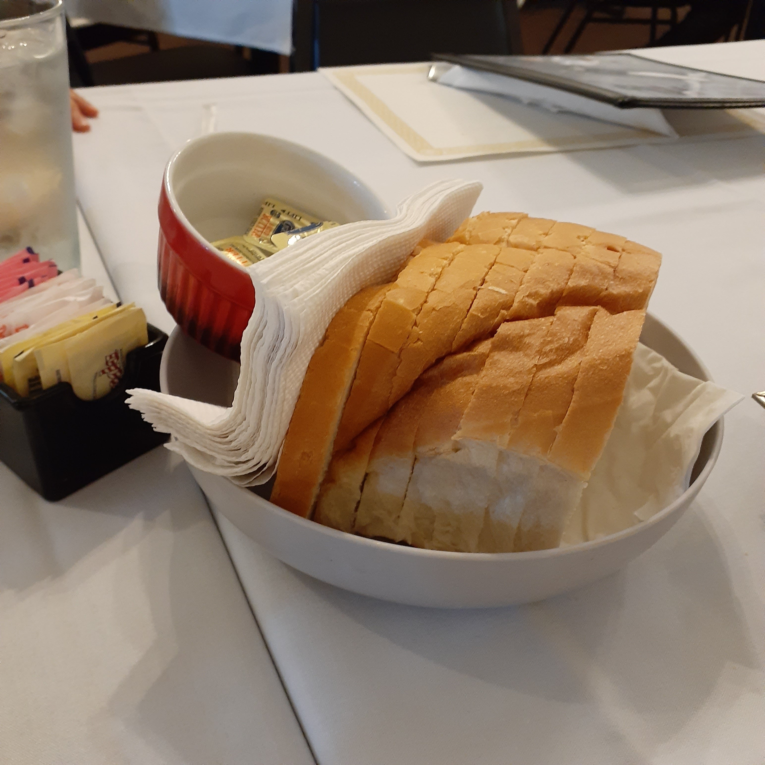 The bread is soft and fluffy and comes served with prepackaged butter pats, which were nice and soft. No frozen hard butter that makes you tear the bread. I ate several slices before my soup and salad came out (entrees come with choice of soup or salad, but I ordered the salad on the side). The salad dressing is a delicious vinegar-based European dressing. You can’t go wrong with any of their soups, but you will have to add some salt and pepper. They definitely cater to the elderly patrons who are watching their salt intake. I’ve had the clam chowder, the ham and barley, and the chicken noodle soups. All were really tasty.