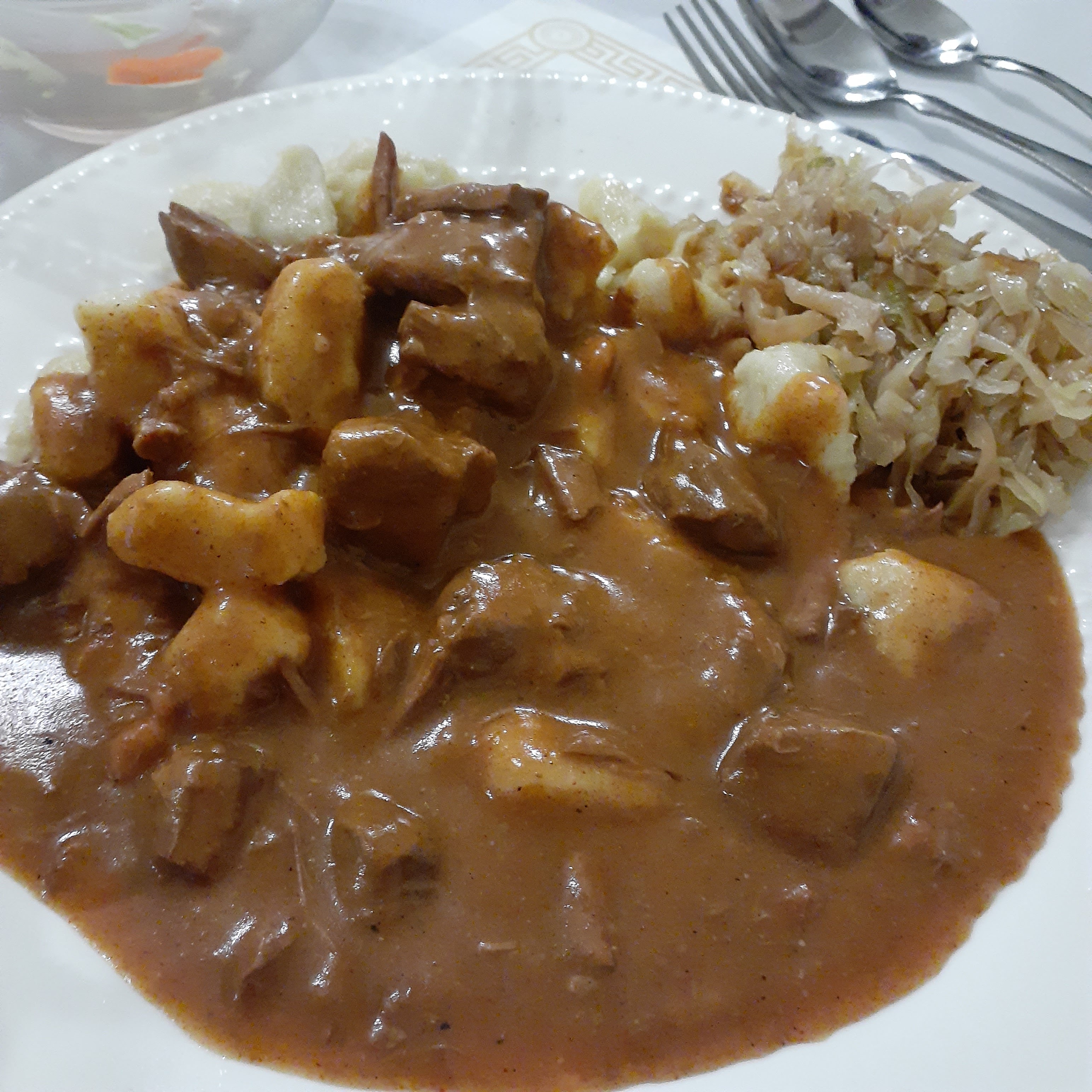 My fellow diners enjoyed the goulash with spätzle and with noodles as well as a schnitzel with homefries, and one diner ordered the pork chop with spätzle. The goulash is authentically Viennese in that it is just meat and sauce. Everyone loved their entrees and sides of choice. Several exclaimed that they would be coming here again.