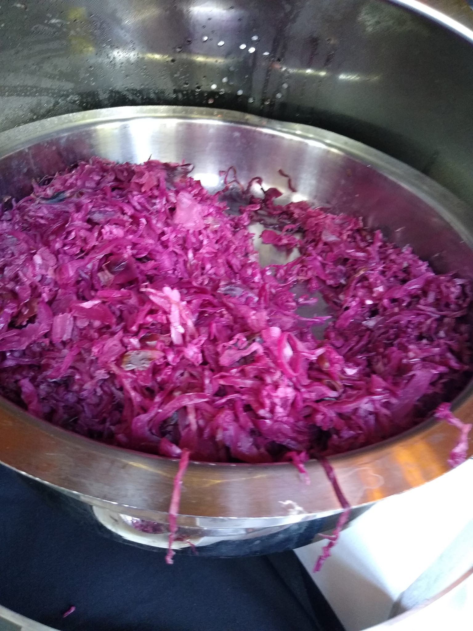 Bottom: red cabbage, German potatoes, spätle (not pictured: pretzels and beer cheese)