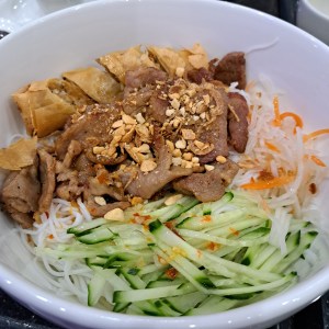 I also ordered a vermicelli bowl with grilled pork and spring rolls (B7 Bún Thịt Nướng Chả Giò) as well on my first visit. I poured the delicious fish sauce dressing over a small portion of the veggies and really enjoyed the freshness and lightness of the dish. I added the rest when I ate it for lunch the next day so it didn’t get soggy.