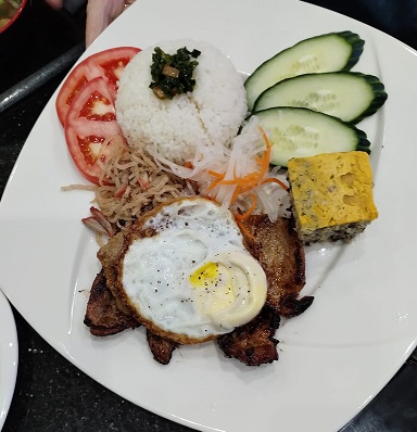 My friends gathered here shortly after it opened, and some of them brought their mothers who had never had Vietnamese food or were at least not very well-versed in it. I recommended the broken rice and pork chop to one of the mothers, so she ordered the House Special Rice Plate (C5 Cơm Đặc Biệt) because she liked the photo, and she loved it. It features a combination of pork chop, shredded pork, pork cake, fried egg, cucumber, tomato, and broken rice. She especially enjoyed the pork cake.