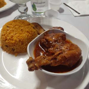 Row 3: Shrimp in garlic sauce with rice/pigeon peas, stewed chicken with tostones
