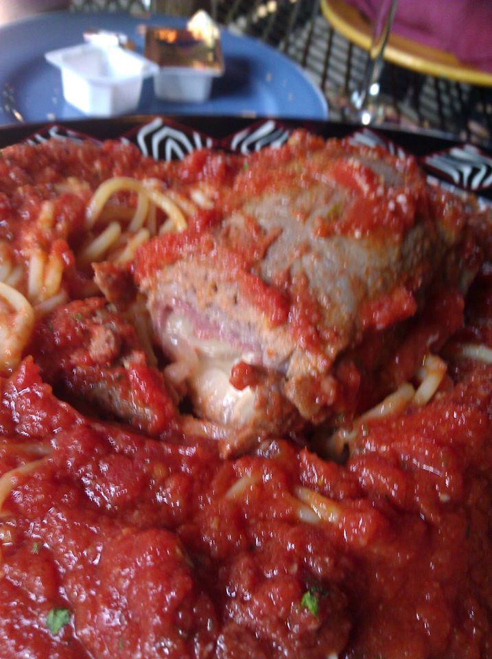 I love the brasciole (there aren’t many places that serve it!) and the lasagna. Brasciole is made from a flat steak that is stuffed with prosciutto, hard boiled egg, cheese, fresh garlic and parsley and rolled. I had it for the first time at a friend’s house when we were carbing up for the Susan G. Komen 3-Day Breast Cancer Walk and fell in love with it. It is served on a bed of marinara pasta. The lasagna is a 60 year old recipe and is also very good. I’ve had it several times and never had reason to complain. People also rave about the chicken piccata.