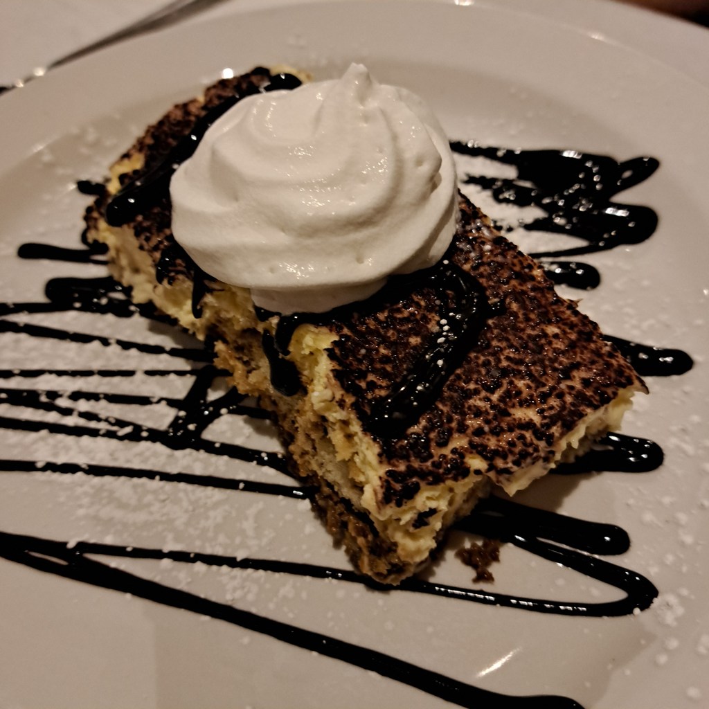 The dessert options were tempting, and included limoncello mascarpone cake, cannolis, and cassata cake. My friend ordered the tiramisu, and it was creamy and absolutely delicious – and large enough to share.