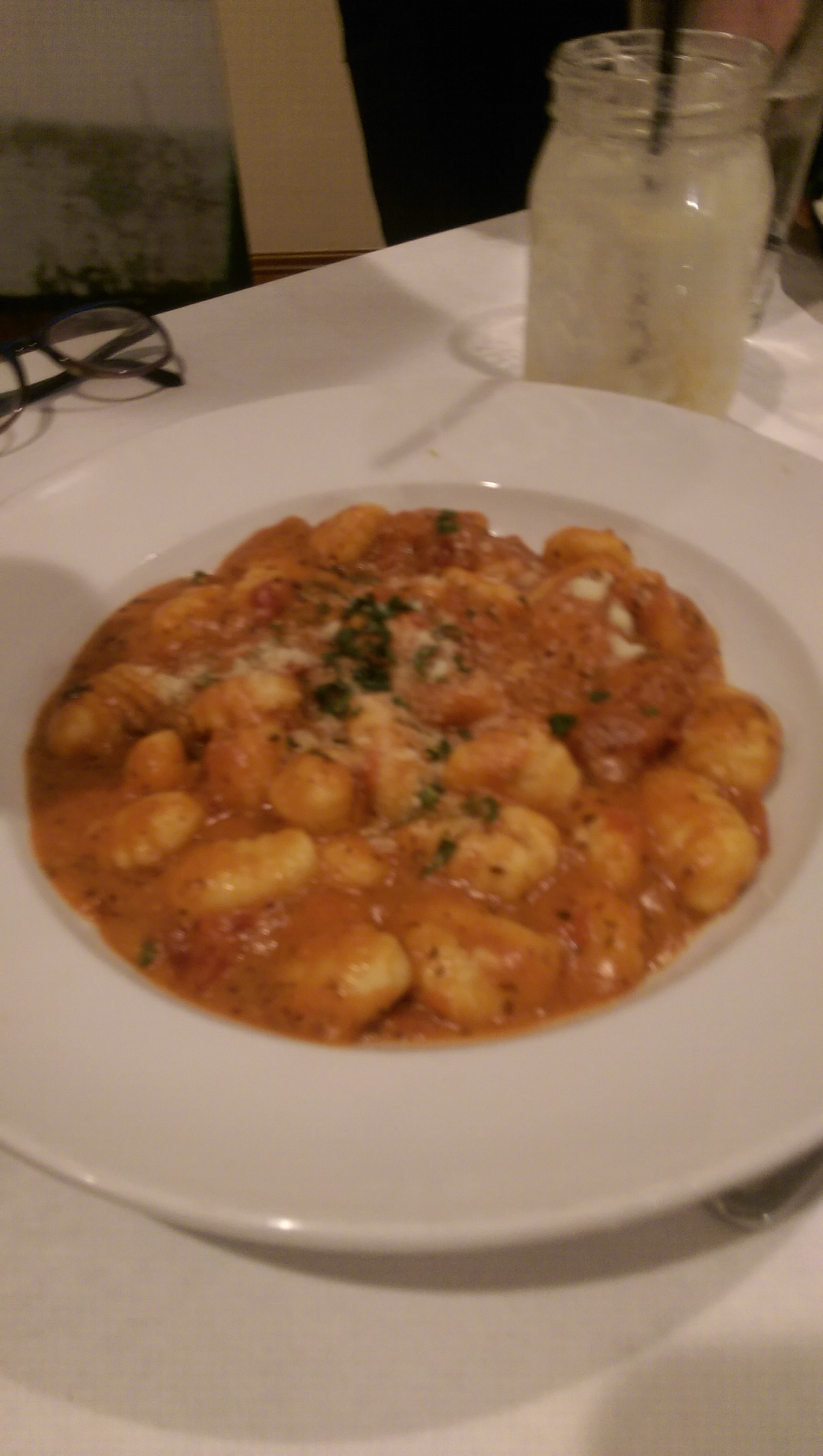 The runners who brought out our food were efficient, but we did have to ask someone for the coffee my friend ordered after she had had her tiramisu for a while. Also, when I asked about the Monte Cristo after-dinner drink the bartender admitted she had been working there since March (it was November) and had never made one. Obviously I didn’t order it, but it is really nice to be able to order a drink because the town was dry when I was growing up and residents had to cross the town line to drink alcohol in an establishment. My friend enjoyed her cocktail, which she said had lots of bourbon, and a glass of Chianti with dinner. I had a pumpkin martini, which was perfectly prepared.