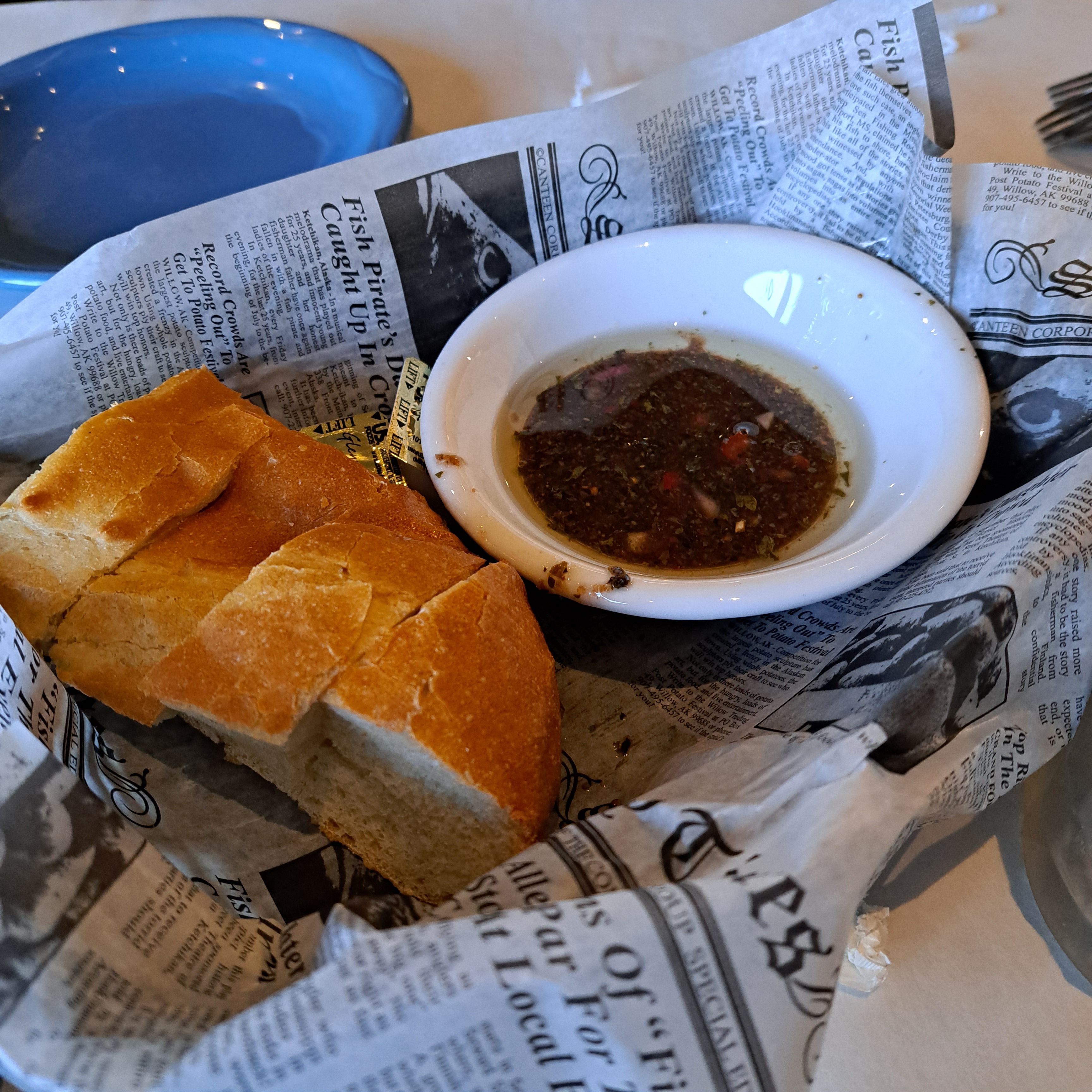 As for dinner service, the bread is warm and has a nice crust. It is served with both butter and a dipping oil of vinegar and lots of herbs and roasted heirloom tomatoes. The butter was not rock hard, which I really liked. I like being able to choose between dipping oil or butter and totally appreciate being able to spread the butter I am given.