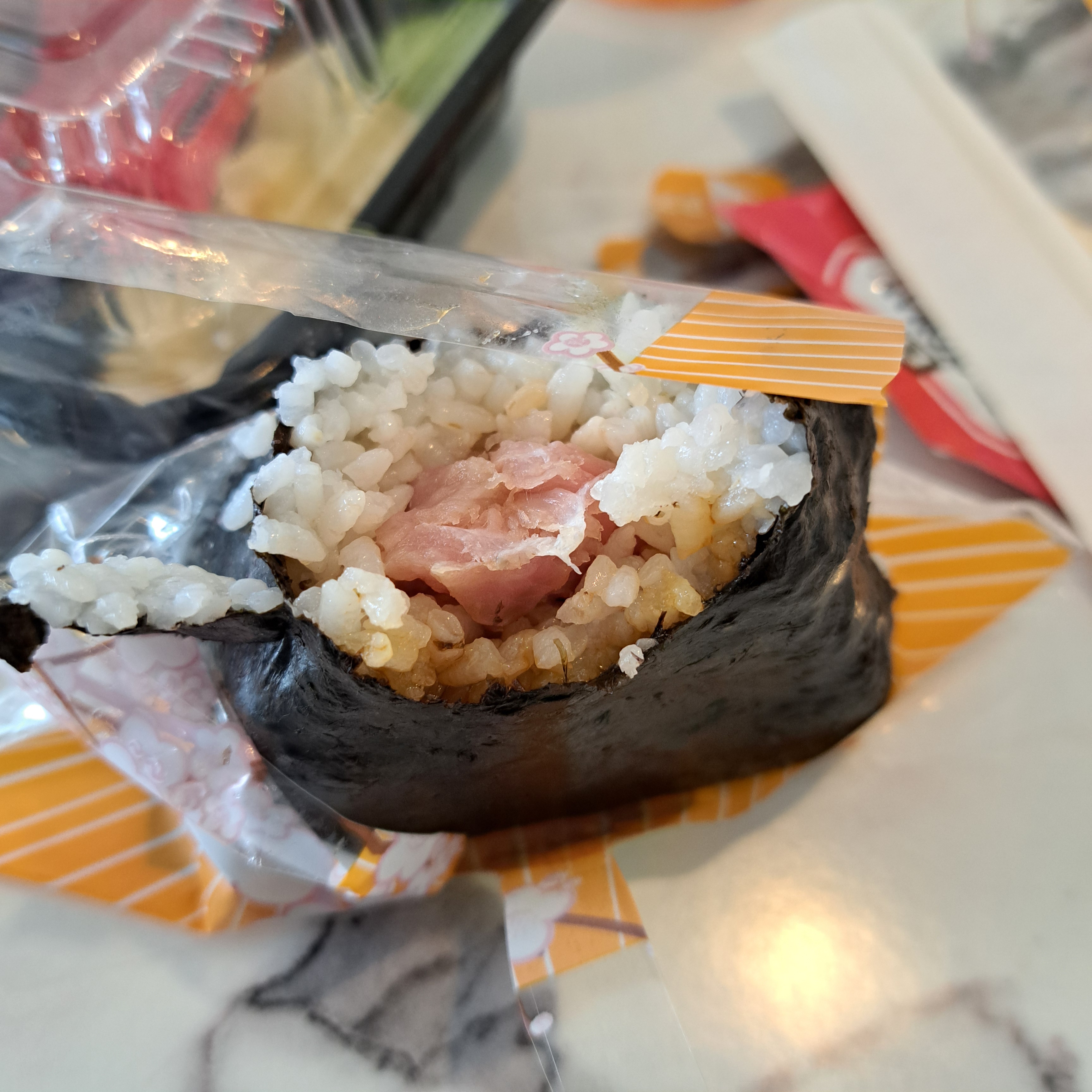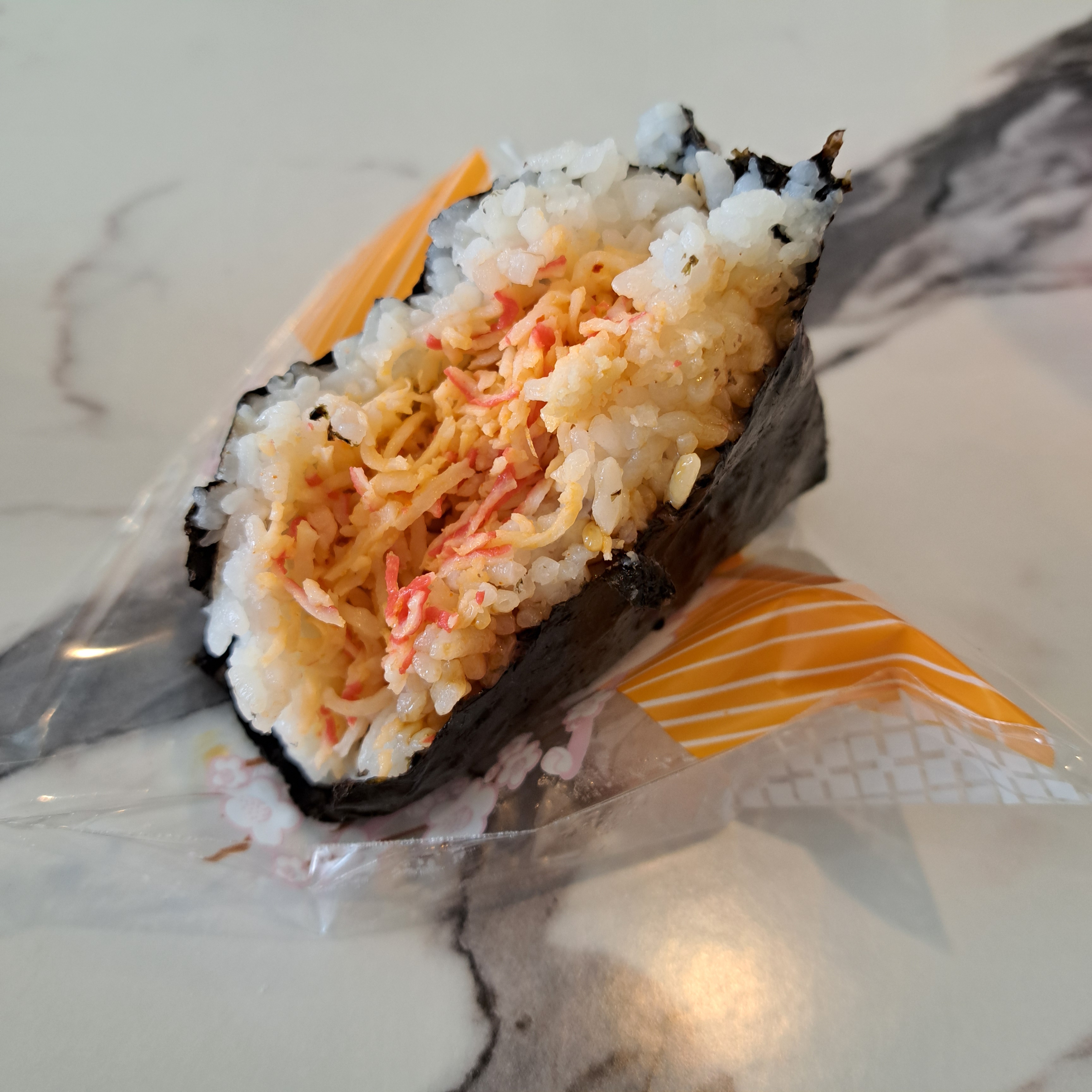 I was greeted like a regular by the owner and waited for my friend to arrive. We ordered at the counter and sat there chatting as our food was being prepared. I noticed they had several new onigiri on the menu – a crab salad and a raw tuna, so I definitely had to order them. I love onigiri, and Ice or Rice is the only place that serves them here in Cleveland. They are a must for me. Onigiri (おにぎり) are Japanese rice balls made of steamed rice that you compress into a triangular, ball, or cylinder shape and are usually wrapped in a nori seaweed sheet. The filling here is very generous – with lots of crab salad and a really nice chunk of tuna. They are individually packaged to keep them fresh, and they were still slightly warm when I enjoyed them. They were both delicious.