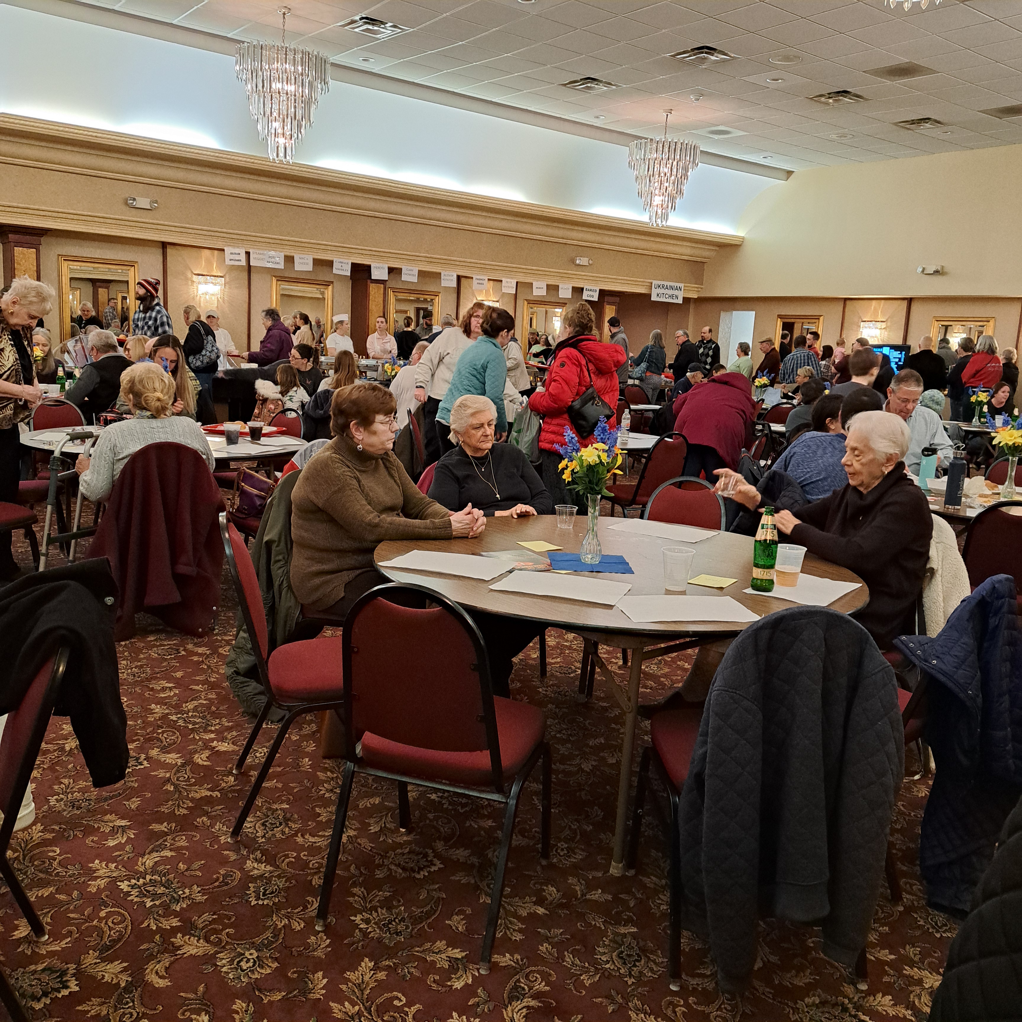 But you are here for the Fish Fry. I chose to return to St. Vladimir’s Orthodox Ukrainian Church for my first Friday Fish Fry of the season. I took someone who just moved to Cleveland from Los Angeles 5 months ago and had never been to or even heard of a fish fry. I chose St. Vladimir because it’s on State Road (near St. Josaphat’s and St. Francis de Sales, so you know they have to offer their A game). It offers five seafood dinners (baked cod, salmon, fried perch, fried whitefish and fried shrimp) and seven sides (french fries, pierogi, potato pancake, redskin potatoes, steamed vegetables, cabbage and noodles, and mac n cheese) to choose from, and some of the best pierogis in the city. We were lucky enough to get a spot really close to the front door. As we walked in we passed the bar, so I got a Ukrainian lager to enjoy during my wait in line. I wasn’t driving, so I was able to enjoy it during the wait and during my meal.