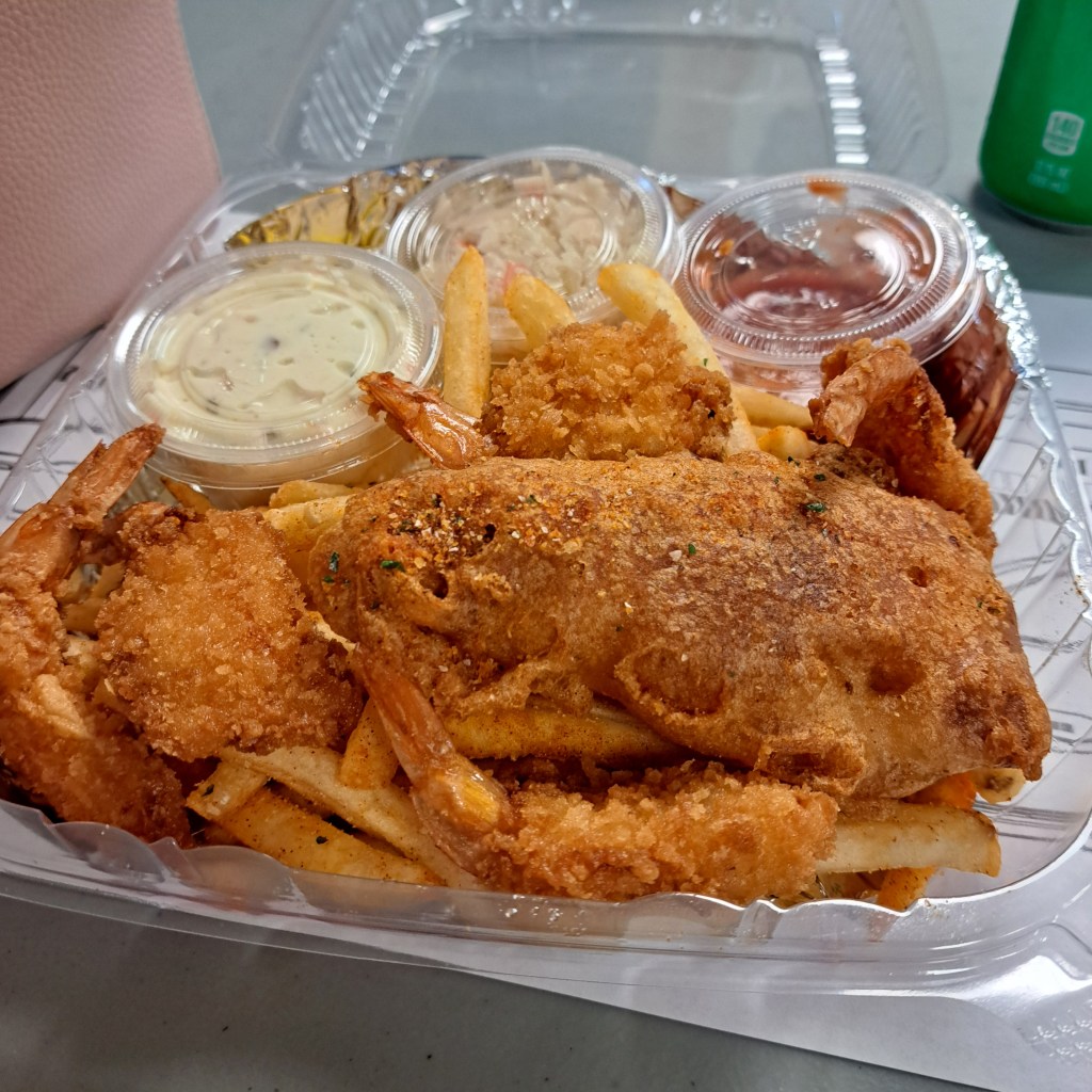 I ordered the fish and shrimp dinner. Both were perfectly fried. The cocktail sauce for the shrimp was tasty, and the tartar sauce was indeed as good as the mayor of University Heights claimed it is. I ate two shrimp, nibbled on a few fries and had a couple bites of the fish as I chatted with my tablemates. I ended up taking most of it home to reheat tomorrow or Sunday.