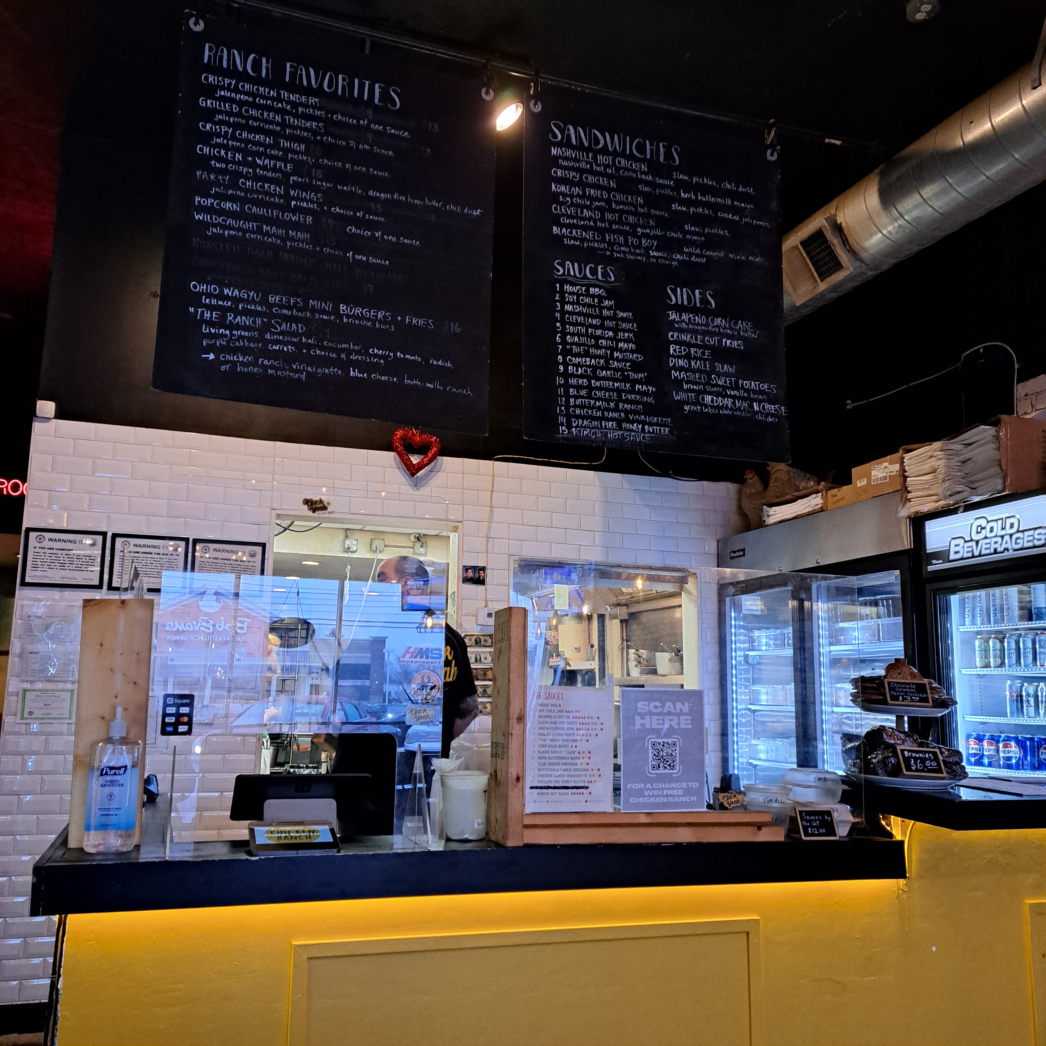 Chef Demetrios Atheneos’ latest foray into food here in Cleveland focuses on quick-serve comfort food. He owns a number of popular sit-down restaurants, like Forage Public House and The Oak Barrel, but during COVID he decided to open a quick-serve comfort food concept. His uncle originally had a restaurant called Chicken Ranch in the ’80s in Brooklyn, New York and it was his inspiration. His family works here – specifically his brother Niko and Demetrios’ sister and daughter. His brother rang me out on my last visit and Niko’s young child was hanging out at a table, trying to get his dad to give him something, which made me chuckle. Luckily Chicken Ranch is close to me on the east side, on Cedar Road in University Heights. Located in the former Lox, Stock and Brisket spot, this is a small place set up mainly for take-out, but it has a few tables that you can bring your food to and eat in if you want.