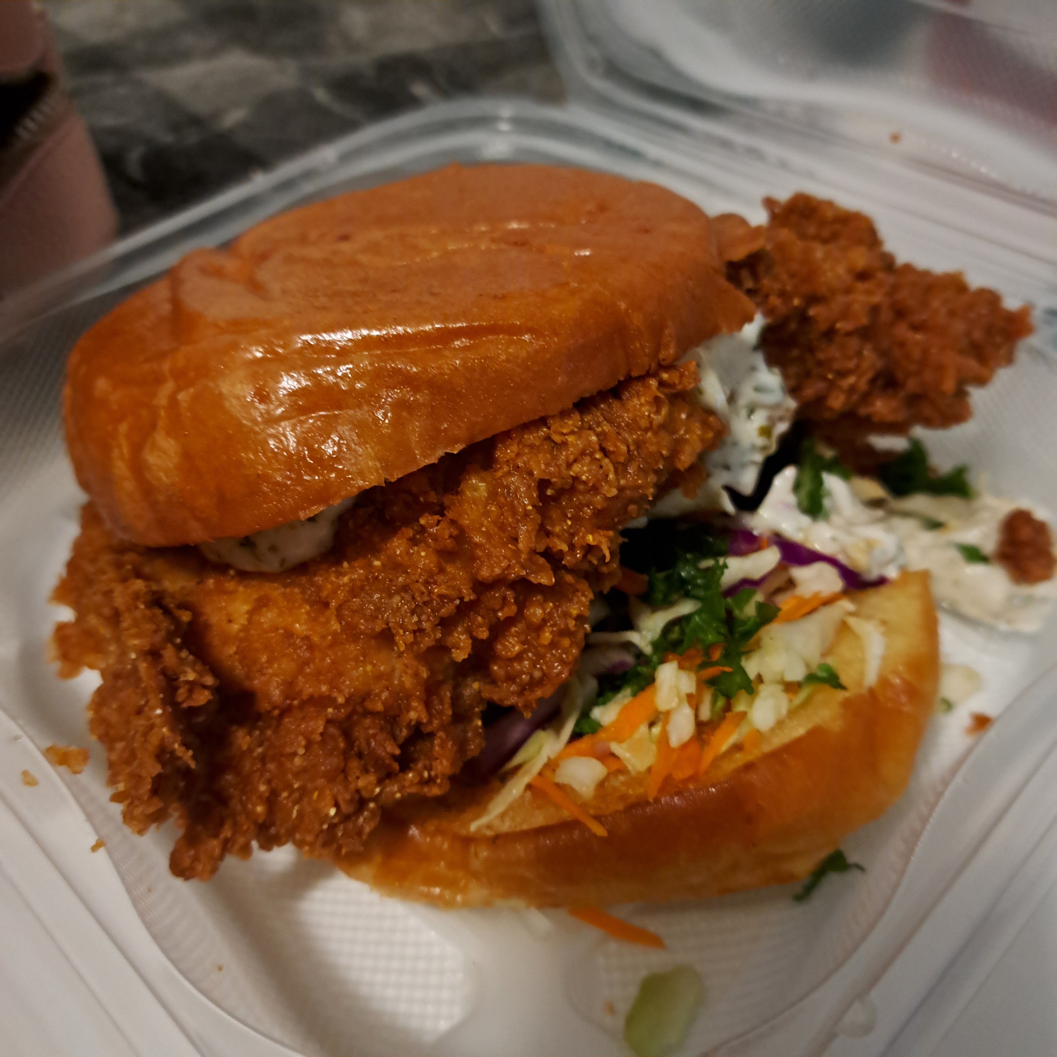 On my next visit I went with the Crispy Chicken Sandwich (they have several spicier choices as well, including the Nashville Hot Chicken they are known for). The herb buttermilk mayo was a great addition, and the slaw was fresh and crispy. They were a nice balance to the huge brined chicken breast. I obviously couldn’t finish it either. I had wanted to order the white cheddar mac n cheese, but somehow was confused when I opened the container and found no noodles. Turns out I was given the mashed sweet potatoes. I have no idea if I ordered the wrong thing or the wrong button was pushed. Mistakes happen (like my friend who ordered a patty melt instead of the tuna melt she had been thinking about all week – it happens). I wasn’t about to drive back and exchange it, so I ate it. It was sweet and tasty, but when you have your heart set on comforting mac n cheese it was kind of disappointing. Check your order before you drive away (not bad advice wherever you are, but easy to not think about in the moment). The serving sizes are generous and easily made two meals.