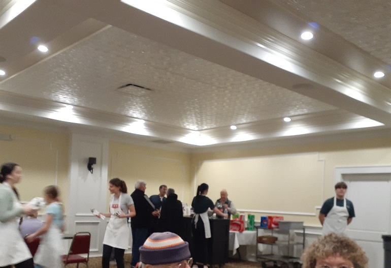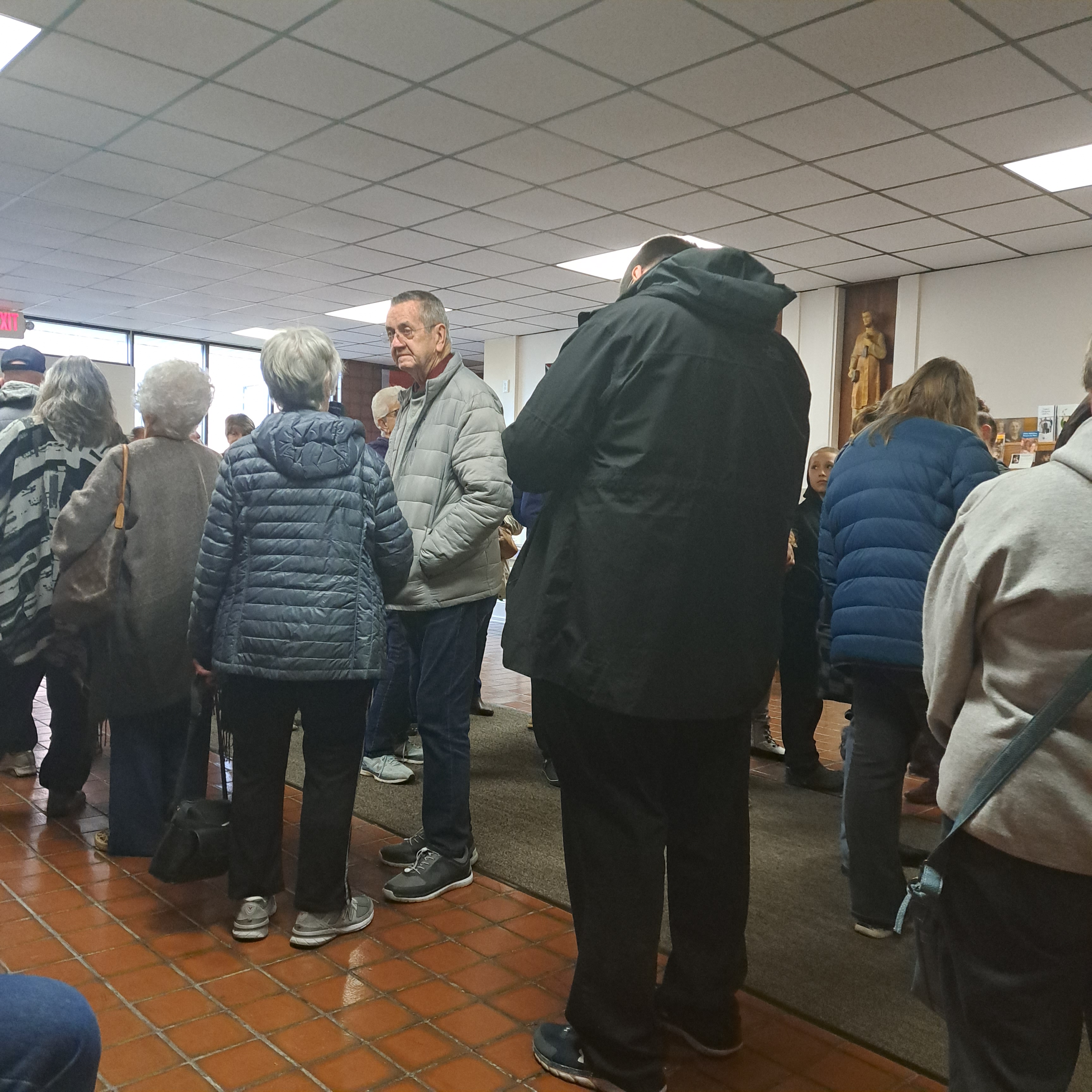 St. Mary of the Assumption is a Roman Catholic church located on Holmes Avenue just off E. 152nd just before the Rail Yards overpass. I got to the church at around 4:30, found a parking space in a very crowded parking lot (there are several lots around the church as well as street parking) and followed the crowd. The fish fry is in the Parish Hall. There was not much of a line, but it was a bit chaotic. As we walked in several people informed us that they had run out of the soup – at 4:30. No soup for you! It must be good. If you want to get soup, brave the 3:00 crowd. The line had died down a bit by the time I arrived, but I’m sure it gets crazy from 5 to 7.